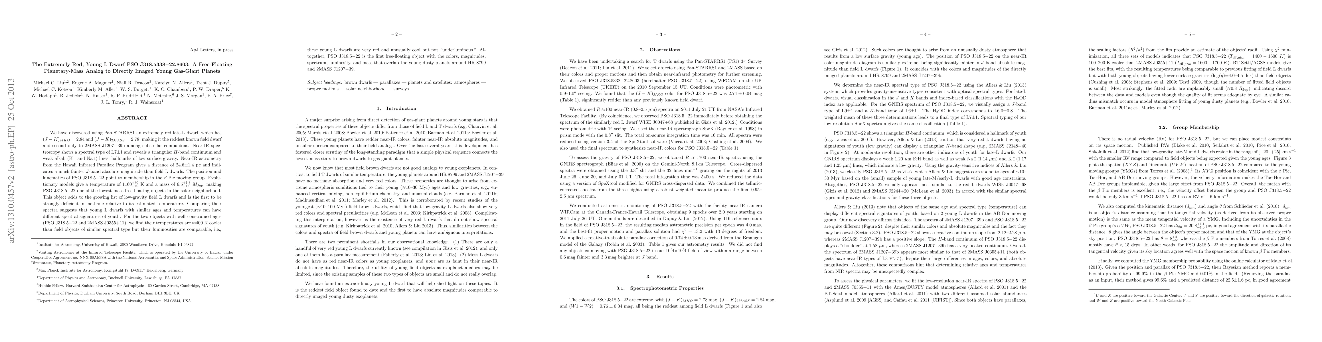 Researchers discovered a young, extremely red L dwarf planet called PSO J318-22, which is one of the lowest mass free-floating objects in the solar neighborhood, with temperatures around 1160K and a mass of 6.5Mjup.