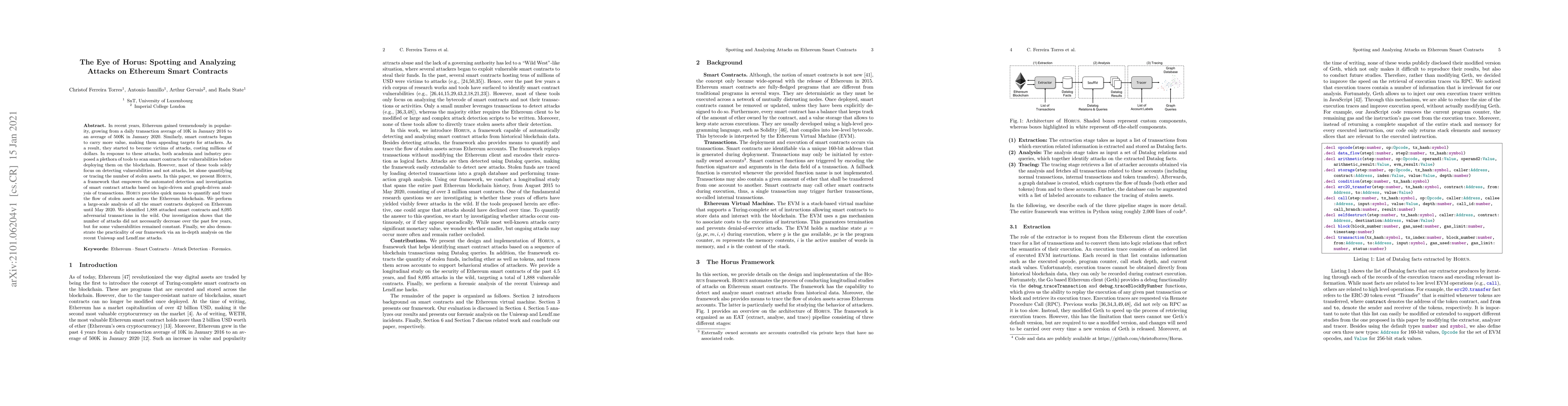 This paper introduces Horus, a framework for detecting and analyzing attacks on Ethereum smart contracts through logic-driven and graph-driven transaction analysis. The study identifies 1,888 attacked contracts and 8,095 adversarial transactions, revealing that attack trends have remained constant despite increased scrutiny.