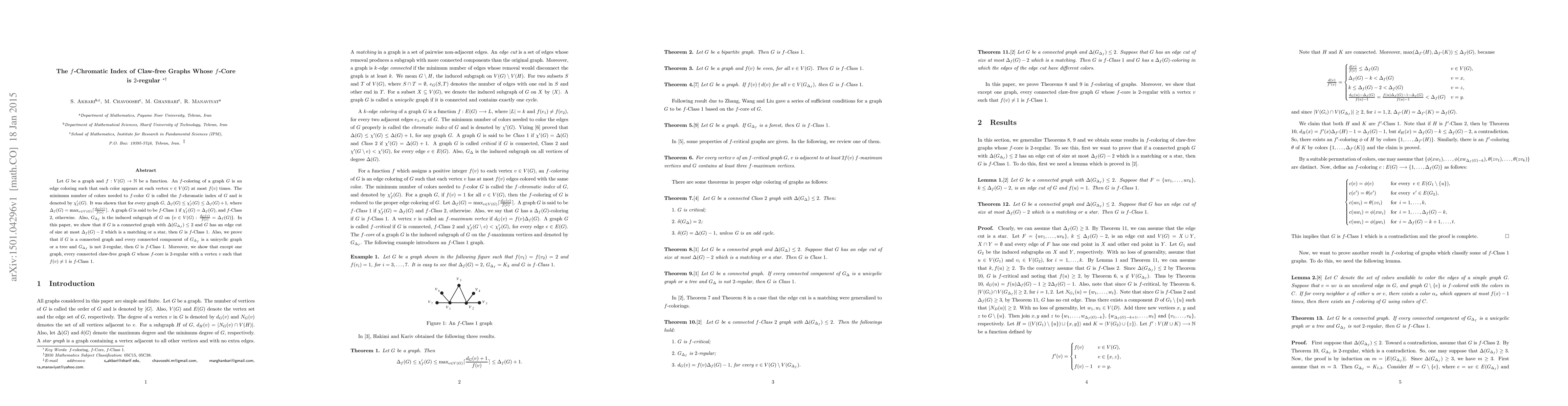 A graph is f-Class 1 if its edge coloring can be achieved with the minimum required colors based on a function, or its core subgraph meets certain properties.