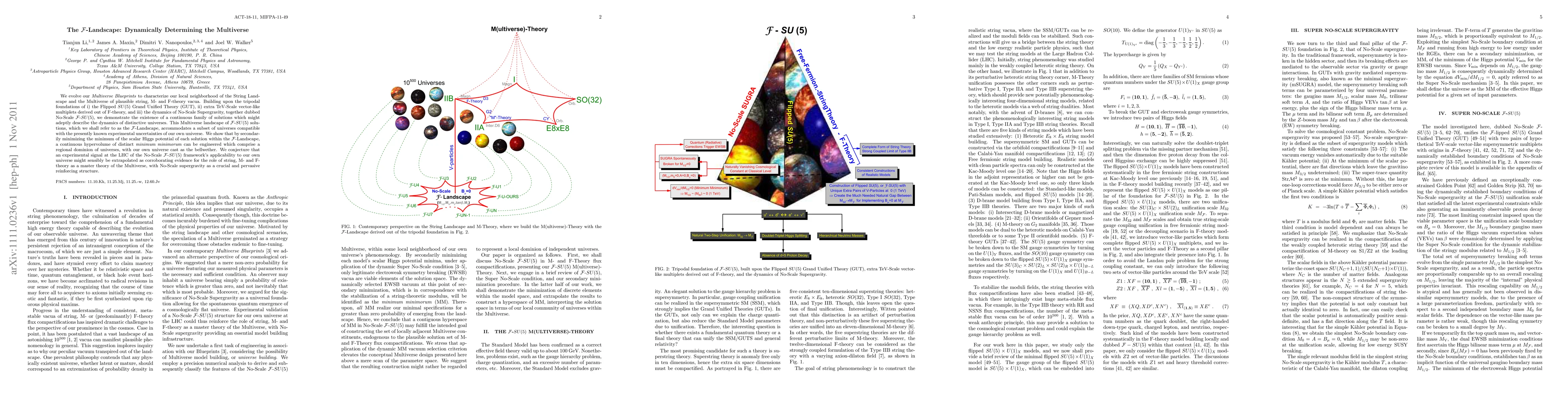 We evolve our Multiverse Blueprints to characterize our local neighborhood of the String Landscape and the Multiverse of plausible string, M- and F-theory vacua. Building upon the tripodal foundations of i) the Flipped SU(5) Grand Unified Theory (GUT), ii) extra TeV-Scale vector-like multiplets derived out of F-theory, and iii) the dynamics of No-Scale Supergravity, together dubbed No-Scale F-SU(5), we demonstrate the existence of a continuous family of solutions which might adeptly describe the dynamics of distinctive universes. This Multiverse landscape of F-SU(5) solutions, which we shall refer to as the F-Landscape, accommodates a subset of universes compatible with the presently known experimental uncertainties of our own universe. We show that by secondarily minimizing the minimum of the scalar Higgs potential of each solution within the F-Landscape, a continuous hypervolume of distinct minimum minimorum can be engineered which comprise a regional dominion of universes, with our own universe cast as the bellwether. We conjecture that an experimental signal at the LHC of the No-Scale F-SU(5) framework's applicability to our own universe might sensibly be extrapolated as corroborating evidence for the role of string, M- and F-theory as a master theory of the Multiverse, with No-Scale supergravity as a crucial and pervasive reinforcing structure.