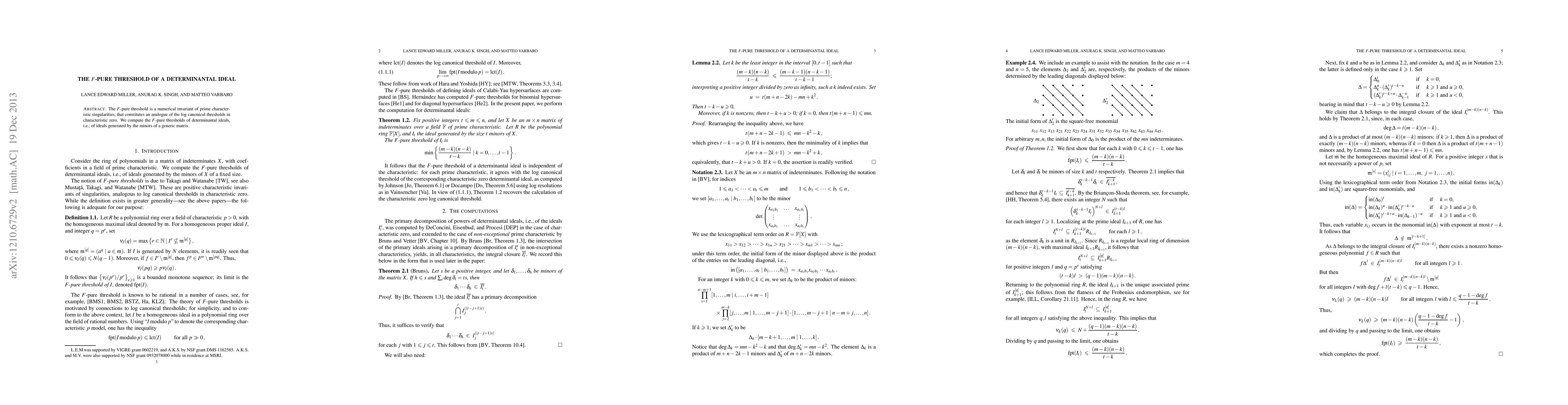 The paper presents a detailed computation of F-pure thresholds for determinantal ideals, linking them to log canonical thresholds and providing a method based on primary decomposition and initial ideals.