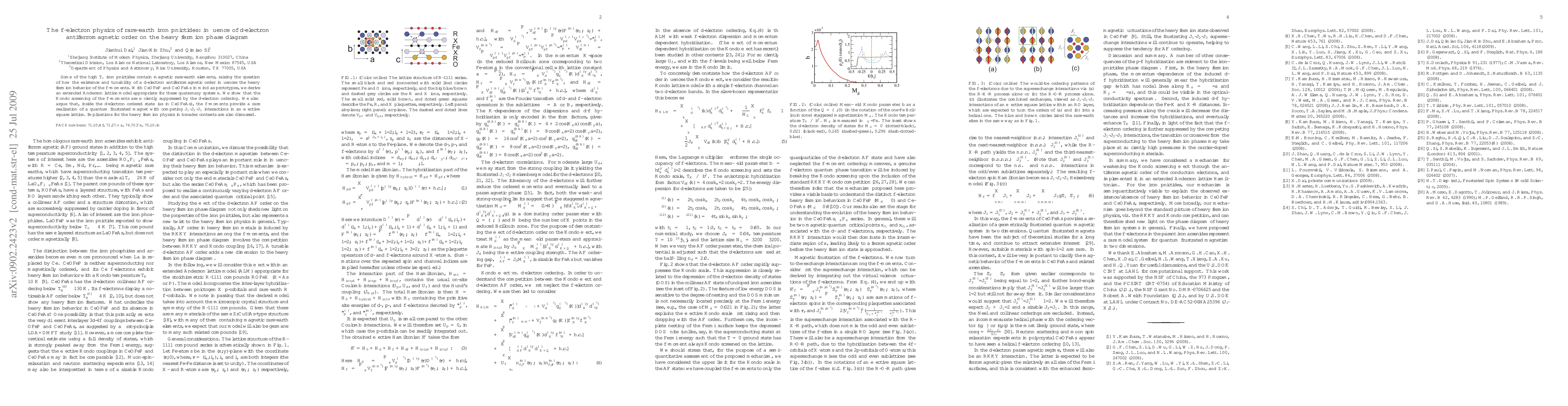 Some of the high Tc iron pnictides contain magnetic rare-earth elements, raising the question of how the existence and tunability of a d-electron antiferromagnetic order influences the heavy fermion behavior of the f-moments. With CeOFeP and CeOFeAs in mind as prototypes, we derive an extended Anderson lattice model appropriate for these quaternary systems. We show that the Kondo screening of the f-moments are efficiently suppressed by the d-electron ordering. We also argue that, inside the d-electron ordered state (as in CeOFeAs), the f-moments provide a rare realization of a quantum frustrated magnet with competing J1-J2-J3 interactions in an effective square lattice. Implications for the heavy fermion physics in broader contexts are also discussed.