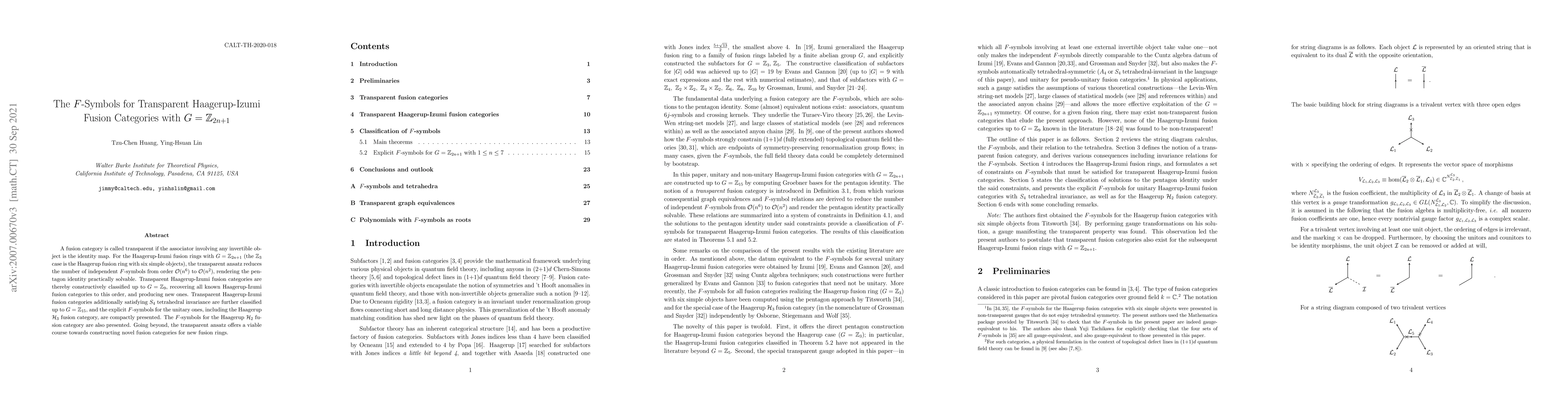 This paper explores transparent Haagerup-Izumi fusion categories with $G = \mathbb{Z}_{2n+1}$, reducing the number of independent $F$-symbols from $\mathcal{O}(n^6)$ to $\mathcal{O}(n^2)$ and classifying these categories up to $G = \mathbb{Z}_9$. It also presents explicit $F$-symbols for unitary categories, including the Haagerup $\mathcal{H}_3$ and $\mathcal{H}_2$ fusion categories.