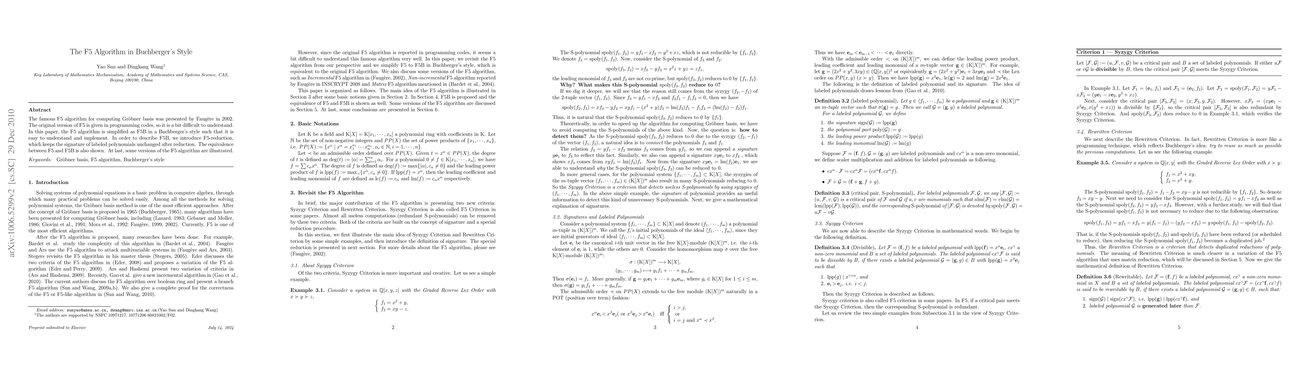 This paper simplifies the F5 algorithm for computing Gröbner bases, presenting it as F5B in Buchberger's style for easier understanding and implementation. It introduces F5-reduction to maintain polynomial signatures and demonstrates equivalence between the original F5 and the new F5B version.