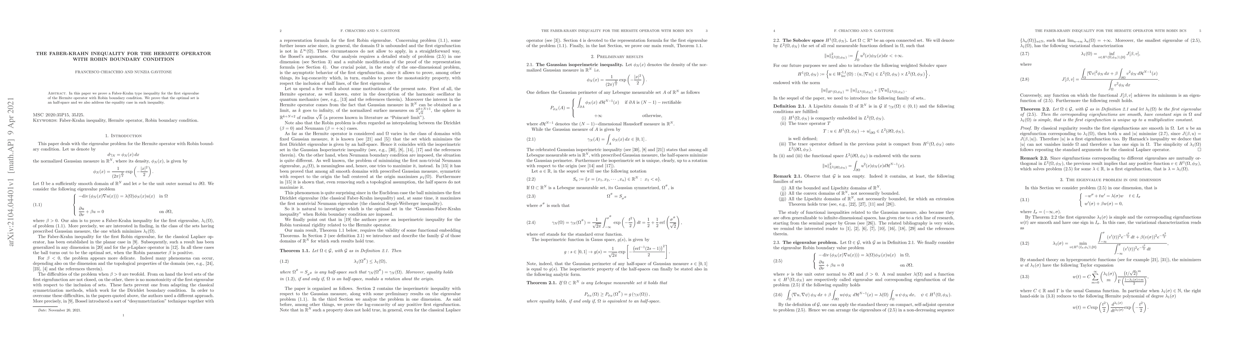 This paper establishes a Faber-Krahn inequality for the first eigenvalue of the Hermite operator under a Robin boundary condition, proving that the optimal configuration is a half-space, and it discusses the conditions for equality in this inequality.