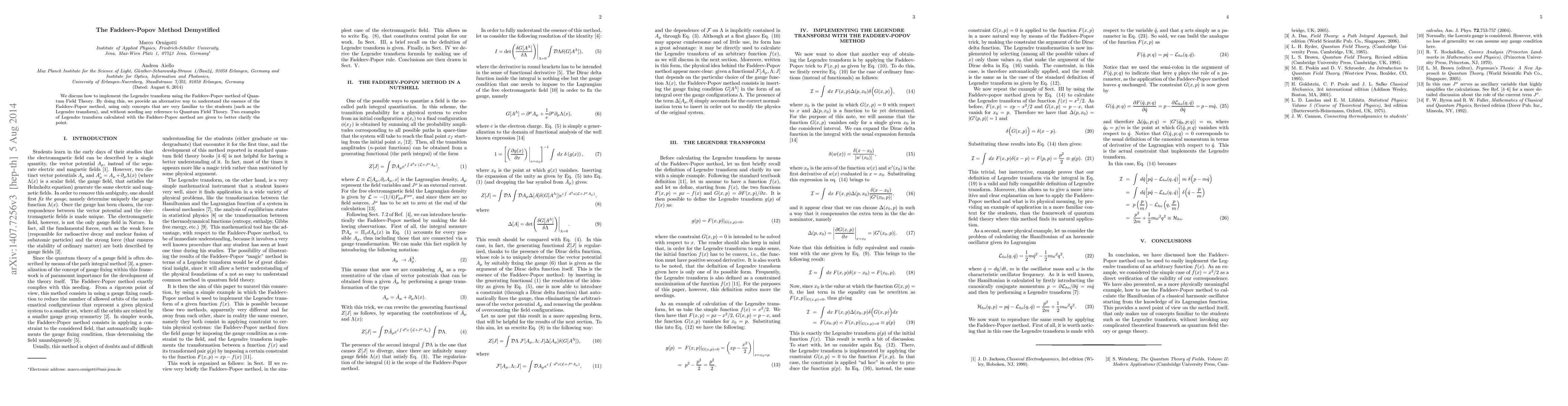 The paper explains how to apply the Faddeev-Popov method in Quantum Field Theory through the Legendre transform, making the technique accessible without deep Quantum Field Theory knowledge. It provides two examples to illustrate the method.