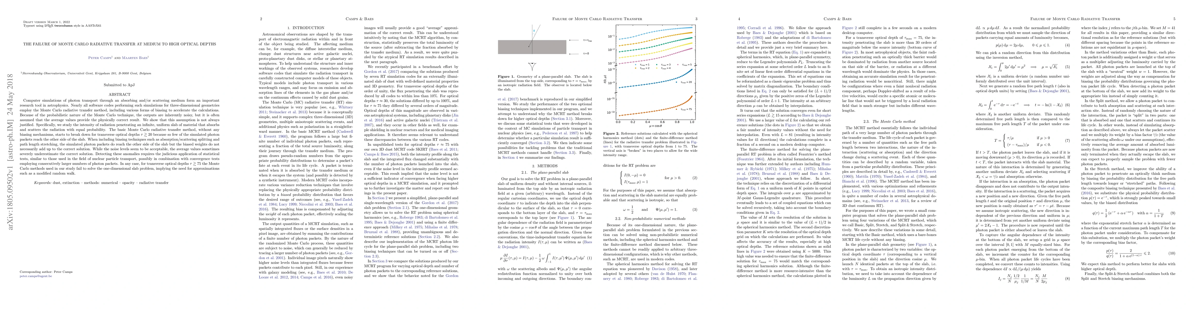 Computer simulations of photon transport through an absorbing and/or scattering medium form an important research tool in astrophysics. Nearly all software codes performing such simulations for three-dimensional geometries employ the Monte Carlo radiative transfer method, including various forms of biasing to accelerate the calculations. Because of the probabilistic nature of the Monte Carlo technique, the outputs are inherently noisy, but it is often assumed that the average values provide the physically correct result. We show that this assumption is not always justified. Specifically, we study the intensity of radiation penetrating an infinite, uniform slab of material that absorbs and scatters the radiation with equal probability. The basic Monte Carlo radiative transfer method, without any biasing mechanisms, starts to break down for transverse optical depths above ~20 because so few of the simulated photon packets reach the other side of the slab. When including biasing techniques such as absorption/scattering splitting and path length stretching, the simulated photon packets do reach the other side of the slab but the biased weights do not necessarily add up to the correct solution. While the noise levels seem to be acceptable, the average values sometimes severely underestimate the correct solution. Detecting these anomalies requires the judicious application of statistical tests, similar to those used in the field of nuclear particle transport, possibly in combination with convergence tests employing consecutively larger numbers of photon packets. In any case, for transverse optical depths above ~75 the Monte Carlo methods used in our study fail to solve the one-dimensional slab problem, implying the need for approximations such as a modified random walk.