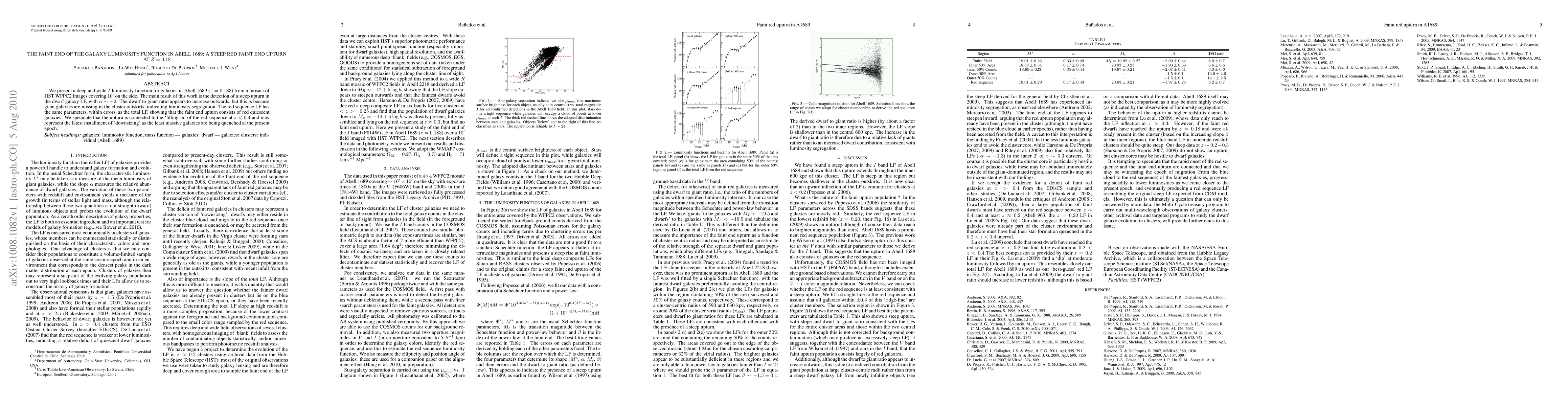 We present a deep and wide $I$ luminosity function for galaxies in Abell 1689 ($z=0.183$) from a mosaic of HST WFPC2 images covering $10'$ on the side. The main result of this work is the detection of a steep upturn in the dwarf galaxy LF, with $\alpha \sim -2$. The dwarf to giant ratio appears to increase outwards, but this is because giant galaxies are missing in the cluster outskirts, indicating luminosity segregation. The red sequence LF has the same parameters, within errors, as the total LF, showing that the faint end upturn consists of red quiescent galaxies. We speculate that the upturn is connected to the `filling-in' of the red sequence at $z < 0.4$ and may represent the latest installment of `downsizing' as the least massive galaxies are being quenched at the present epoch.