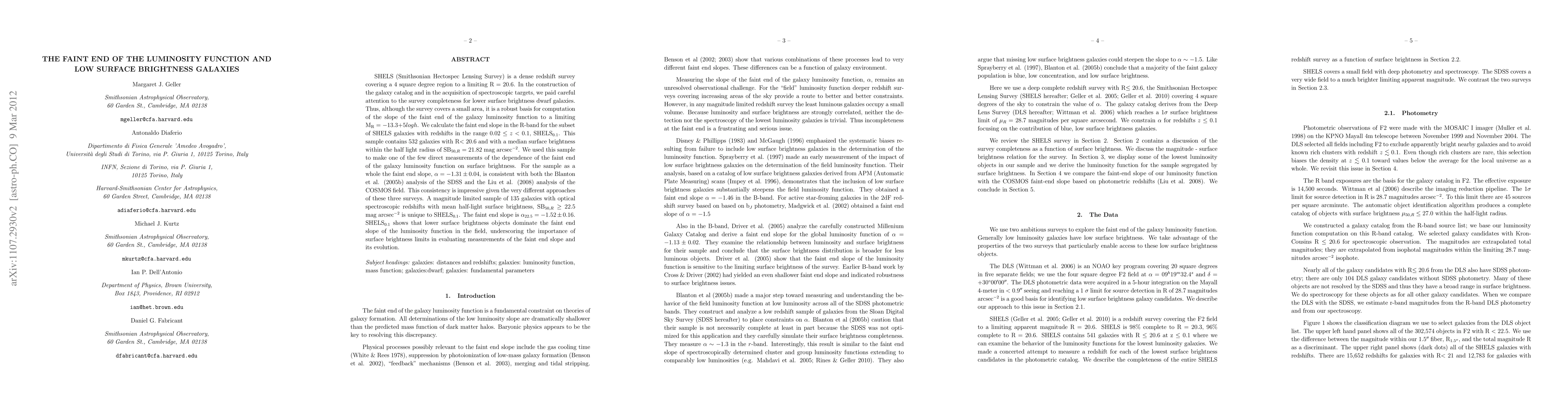 The SHELS survey provides a robust catalog of galaxies with a focus on low surface brightness dwarf galaxies, allowing for a precise measurement of the faint end slope of the galaxy luminosity function. The study finds that lower surface brightness galaxies dominate the faint end, with a slope of α = -1.31 ± 0.04, consistent with other large surveys despite different methodologies.