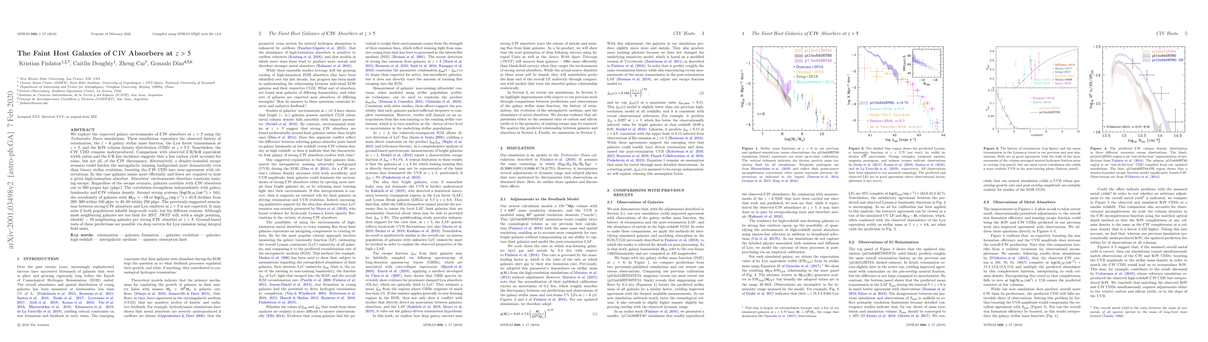 Simulations suggest that CIV absorbers at z>5 are often hosted by faint galaxies with strong correlations to their environments, hinting at unique ionizing escape mechanisms.
