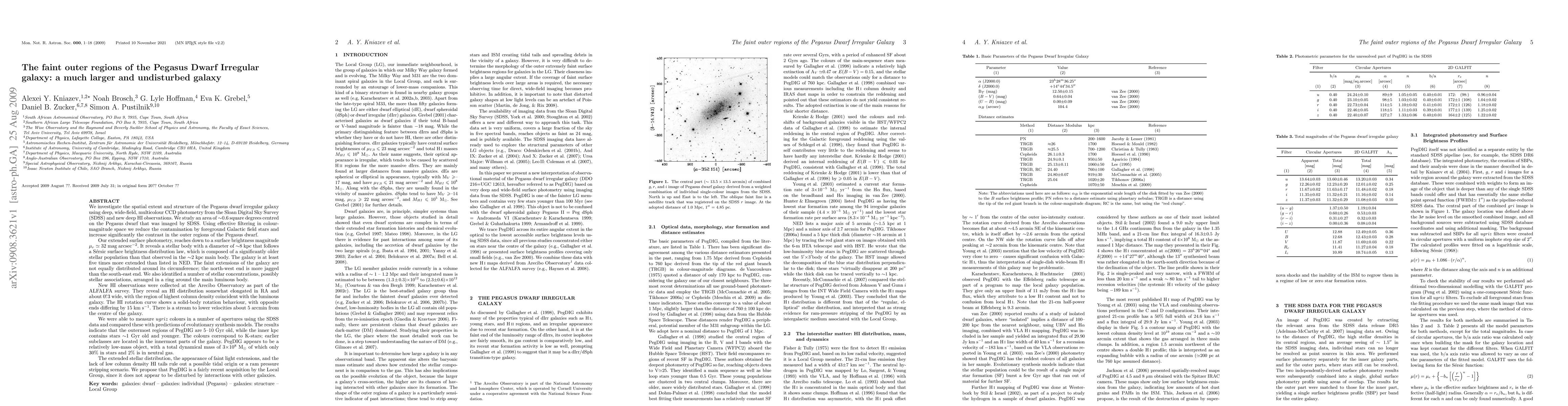 The research utilized deep, wide-field, multicolour CCD photometry from the Sloan Digital Sky Survey (SDSS) and new deep HI observations from the Arecibo Observatory's ALFALFA survey to investigate the spatial extent and structure of the Pegasus dwarf irregular galaxy.