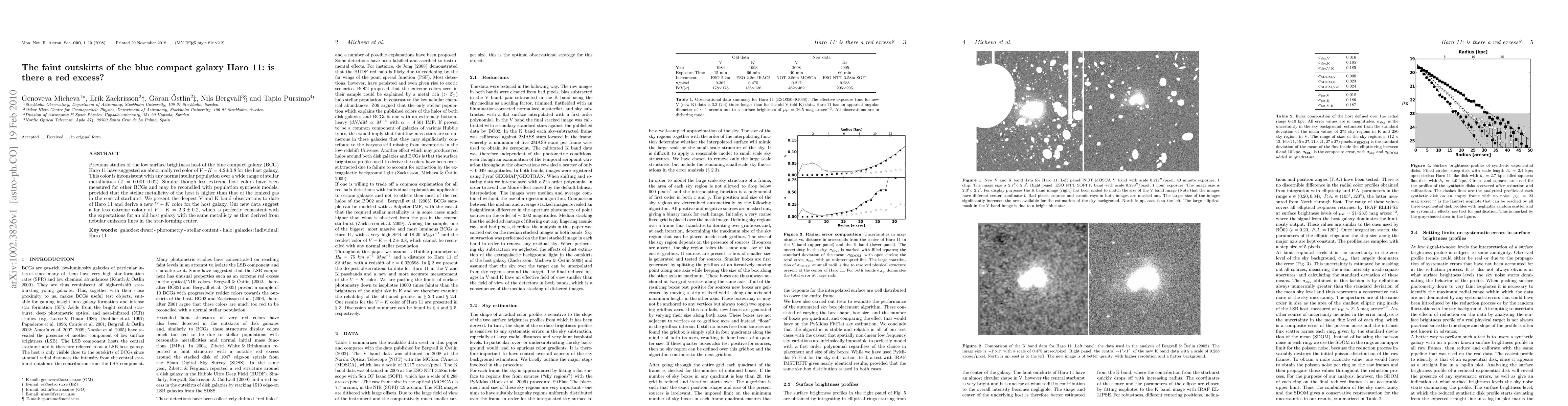 This study reevaluates the faint outskirts of the blue compact galaxy Haro 11, finding that previous claims of an unusually red V-K color are incorrect. New deep V and K band observations reveal a V-K color of 2.3±0.2, consistent with an old stellar population.