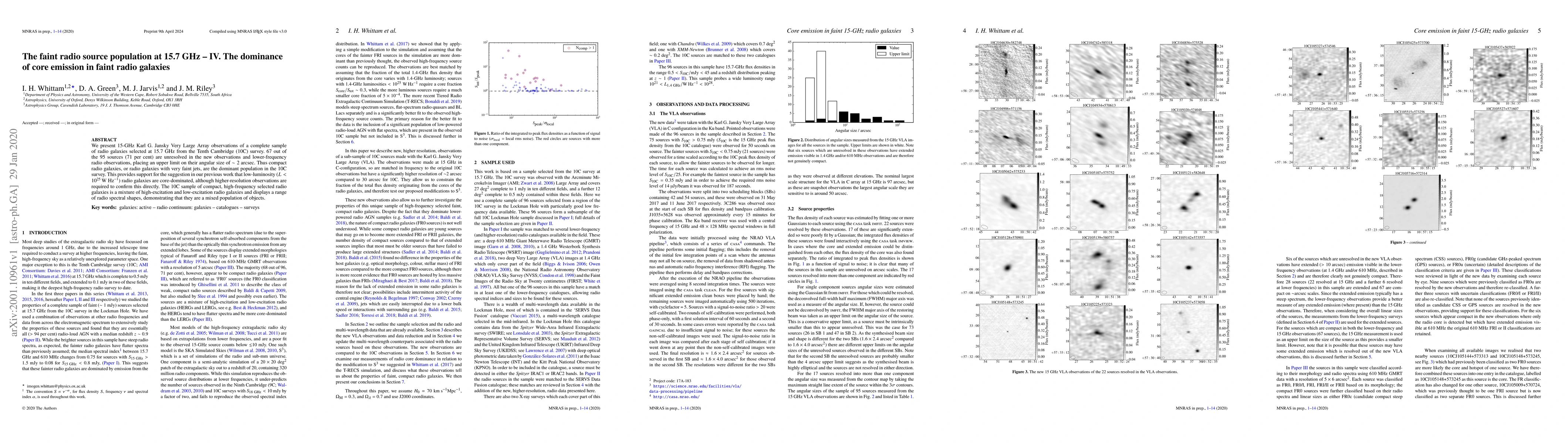 This study uses 15-GHz VLA observations to show that compact radio galaxies dominate the faint radio source population at 15.7 GHz, supporting the hypothesis that low-luminosity radio galaxies are core-dominated. The sample reveals a mixed population of high- and low-excitation radio galaxies with varied spectral shapes.