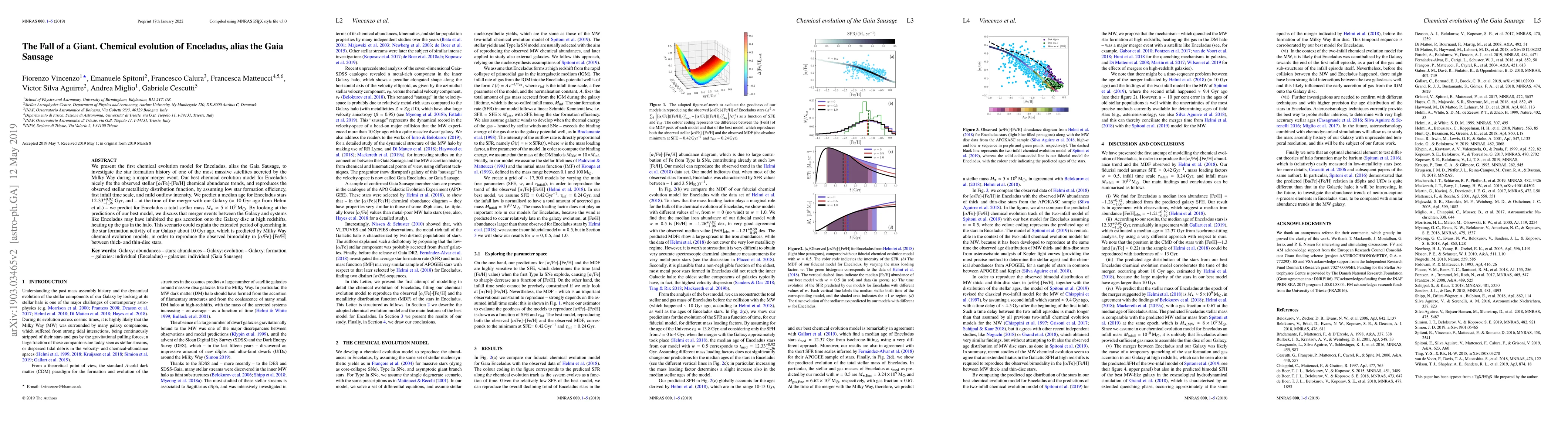 This paper presents a chemical evolution model for Enceladus, a massive satellite accreted by the Milky Way, predicting a median star age of 12.33 Gyr and a total stellar mass of $5 \times 10^{9}\,\text{M}_{\odot}$. The model suggests that such mergers may have inhibited gas accretion onto the Milky Way, explaining the galaxy's star formation quenching about 10 Gyr ago.
