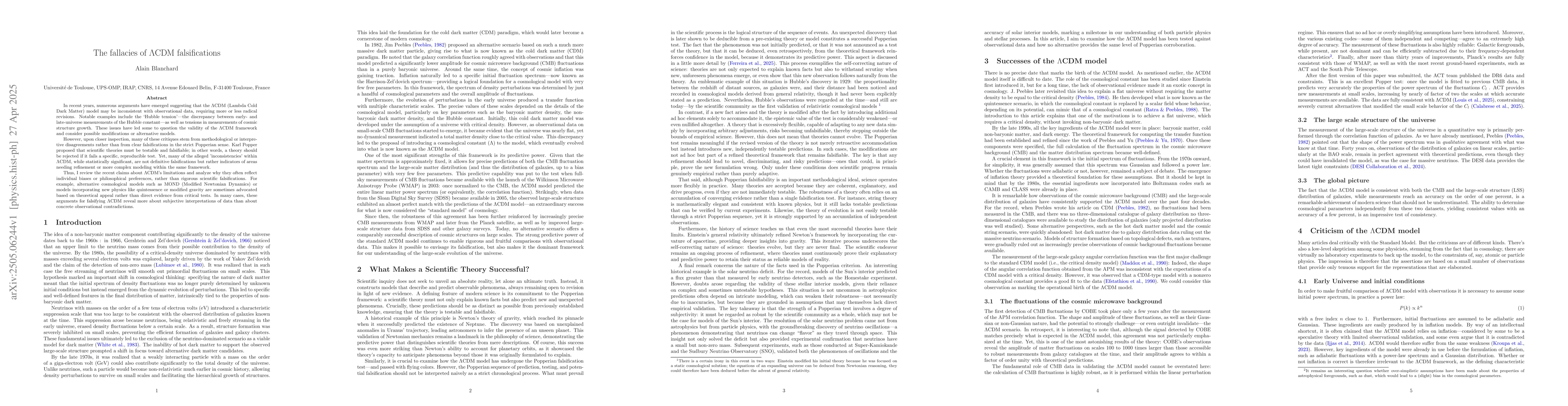 The paper critically examines the Lambda Cold Dark Matter (LCDM) model by reviewing recent claims of its limitations and analyzing whether these constitute genuine falsifications according to Popperian criteria.