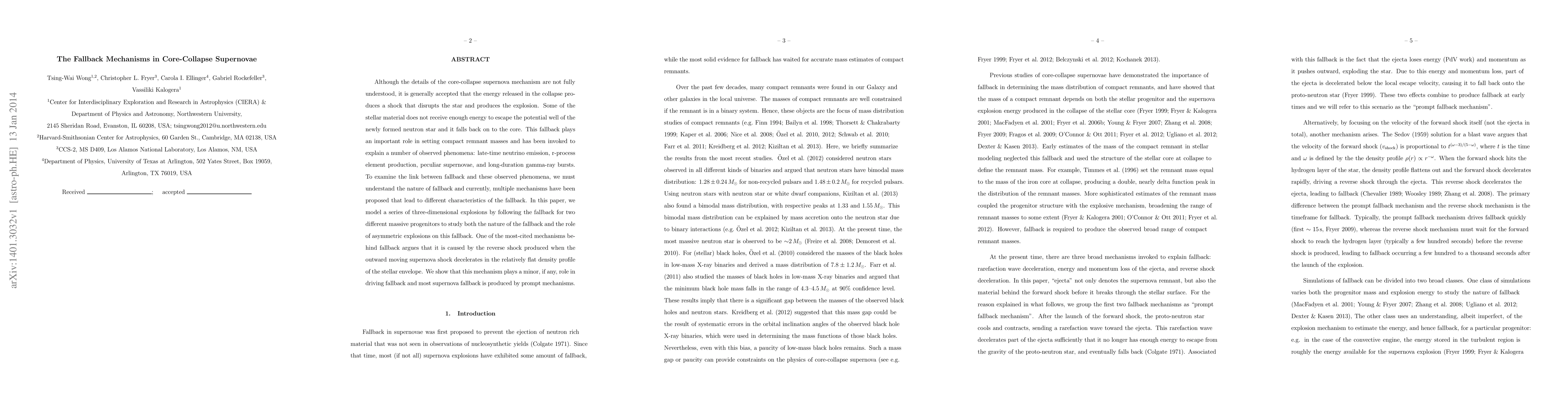 This paper investigates the mechanisms behind fallback in core-collapse supernovae, demonstrating that prompt mechanisms, rather than reverse shocks, predominantly drive fallback. The study models three-dimensional explosions for different massive progenitors, highlighting the role of asymmetric explosions and the importance of fallback in phenomena like neutrino emission and gamma-ray bursts.