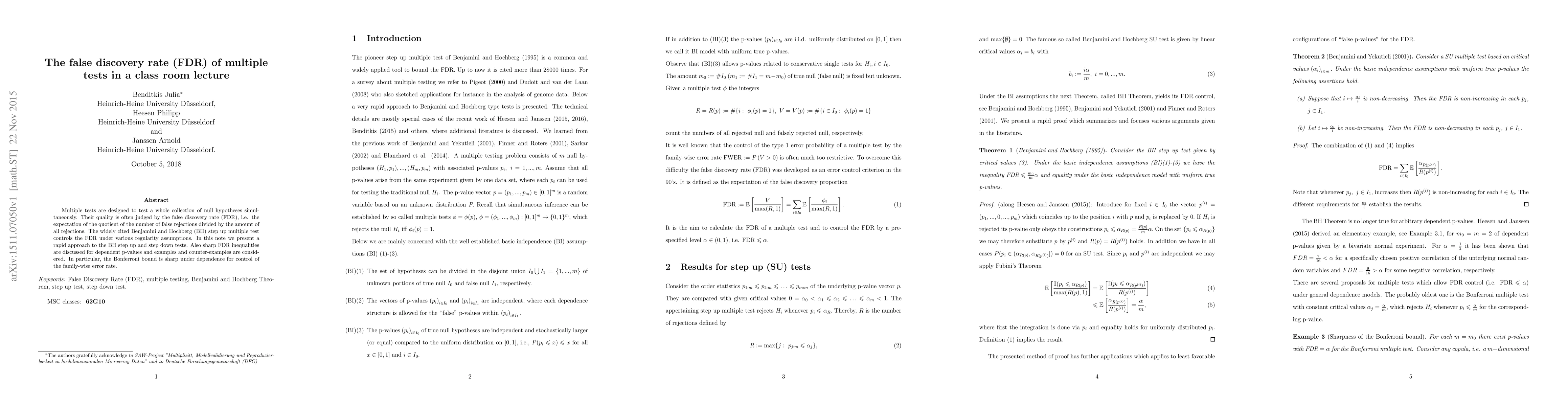 Multiple tests are designed to test a whole collection of null hypotheses simultaneously. Their quality is often judged by the false discovery rate (FDR), i.e. the expectation of the quotient of the number of false rejections divided by the amount of all rejections. The widely cited Benjamini and Hochberg (BH) step up multiple test controls the FDR under various regularity assumptions. In this note we present a rapid approach to the BH step up and step down tests. Also sharp FDR inequalities are discussed for dependent p-values and examples and counter-examples are considered. In particular, the Bonferroni bound is sharp under dependence for control of the family-wise error rate.