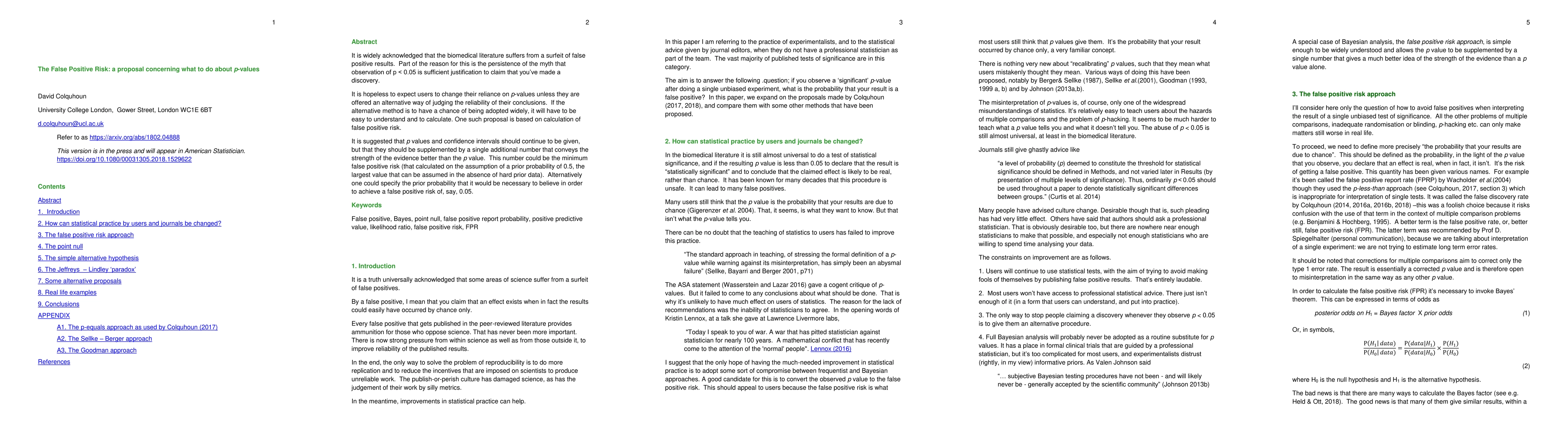 This paper addresses the issue of false positives in biomedical research, arguing that reliance on p values less than 0.05 is insufficient for discovery claims. It proposes supplementing p values and confidence intervals with a minimum false positive risk calculation to better assess the reliability of research conclusions.