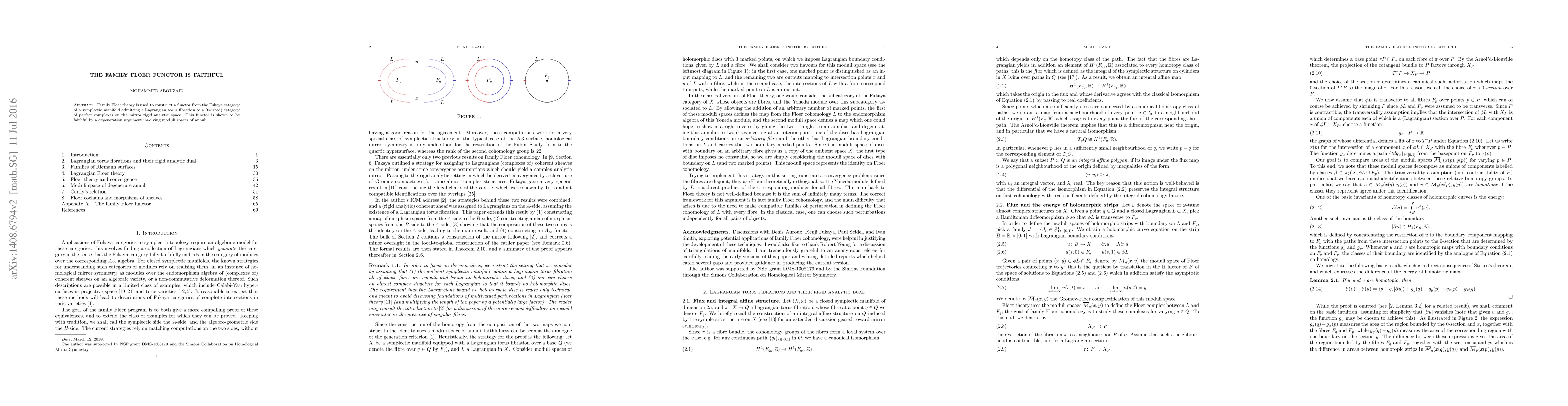 The paper demonstrates that the family Floer functor from the Fukaya category of a symplectic manifold with a Lagrangian torus fibration to the category of perfect complexes on its mirror rigid analytic space is faithful, using a degeneration argument through annuli moduli spaces.