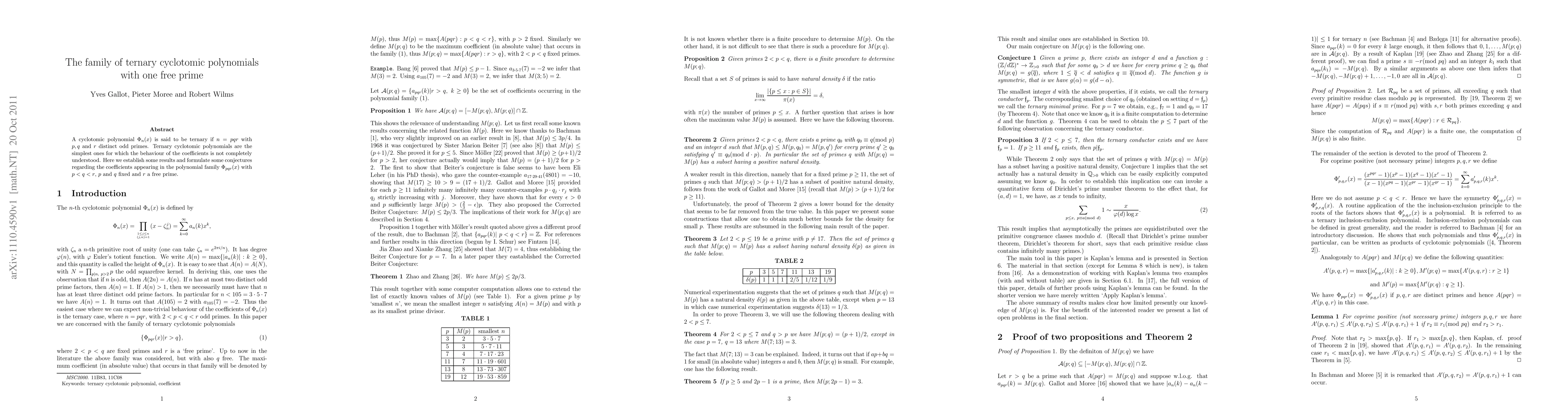 r distinct odd primes. Ternary cyclotomic polynomials are the simplest ones for