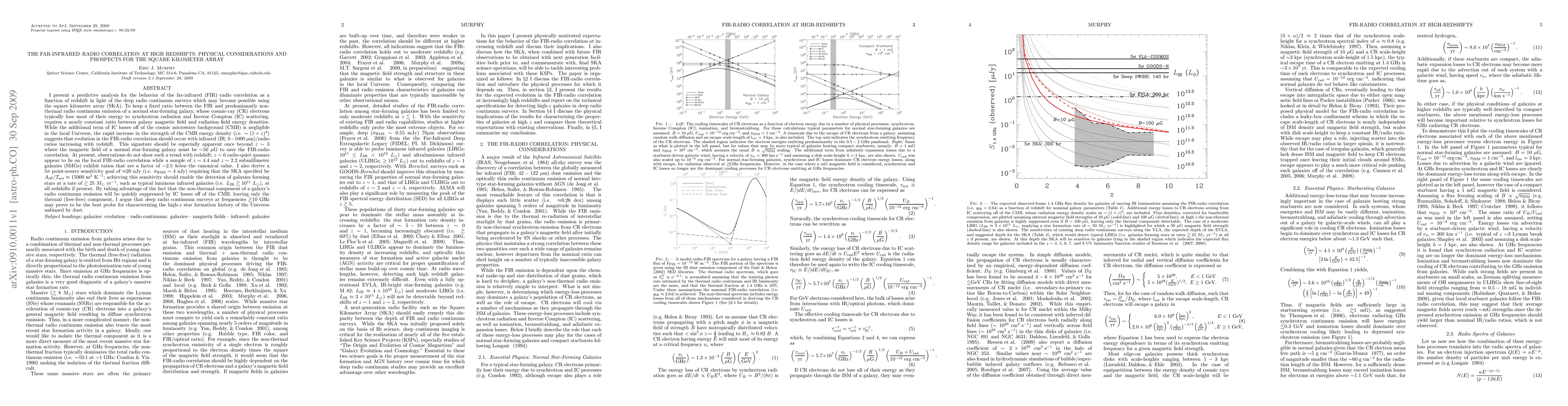 This paper analyzes the far-infrared (FIR) to radio correlation in high-redshift galaxies, predicting that the FIR-radio correlation should evolve with redshift due to the increasing strength of the cosmic microwave background (CMB). The Square Kilometer Array (SKA) is expected to achieve the necessary sensitivity to detect galaxies with high star formation rates, potentially revealing the high-$z$ star formation history unbiased by dust.