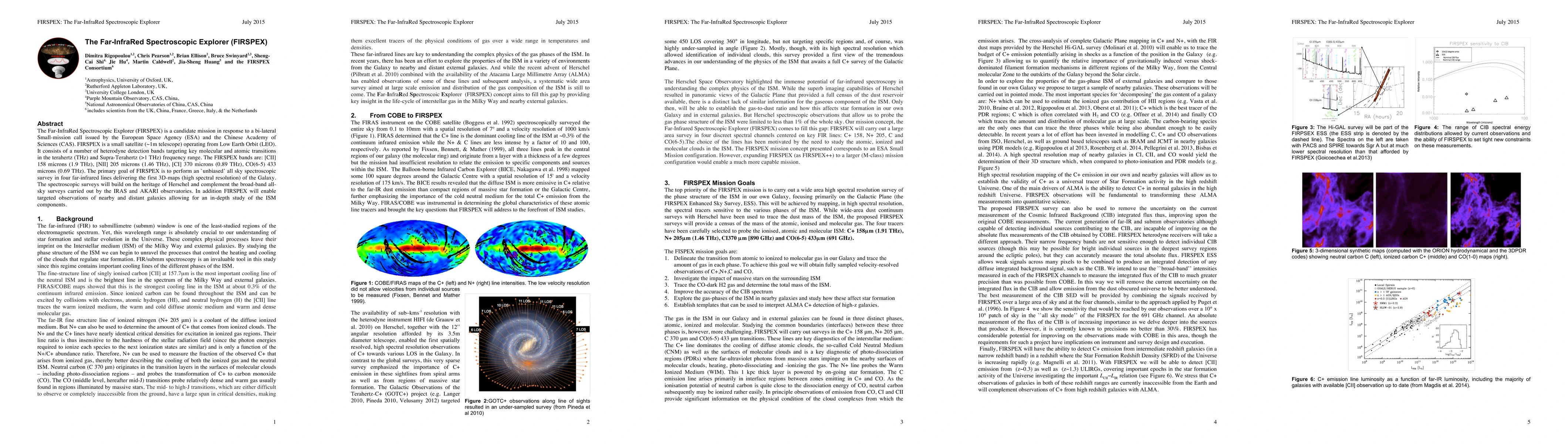 The Far-InfraRed Spectroscopic Explorer (FIRSPEX) is a proposed small satellite mission targeting molecular and atomic transitions in the terahertz range, aiming to conduct an all-sky spectroscopic survey in four far-infrared lines. The mission seeks to create high-resolution 3D-maps of the Galaxy and study interstellar medium components in nearby and distant galaxies.