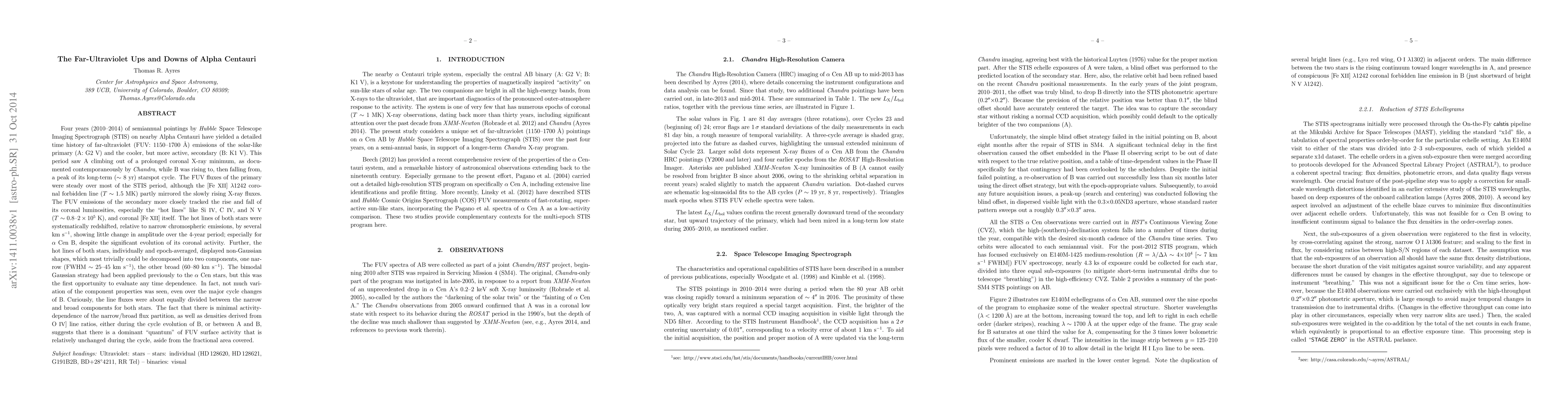 Four years (2010-2014) of semiannual pointings by Hubble Space Telescope Imaging Spectrograph (STIS) on nearby Alpha Centauri have yielded a detailed time history of far-ultraviolet emissions of the solar-like primary (A: G2V) and the cooler, but more active, secondary (B: K1V). This period saw A climbing out of a prolonged coronal X-ray minimum, as documented by Chandra, while B was rising to, then falling from, a peak of its long-term (8 yr) starspot cycle. The FUV fluxes of the primary were steady over most of the STIS period, although the [Fe XII] 124 nm coronal forbidden line (T= 1.5 MK) partly mirrored the slowly rising X-ray fluxes. The FUV emissions of the secondary more closely tracked the rise and fall of its coronal luminosities, especially the "hot lines" like Si IV, C IV, and N V (T= 80,000-200,000 K), and coronal [Fe XII] itself. The hot lines of both stars were systematically redshifted, relative to narrow chromospheric emissions, by several km/s, showing little change in amplitude over the 4-year period; especially for Alpha Cen B, despite the significant evolution of its coronal activity. Further, the hot line profiles of both stars, individually and epoch-averaged, could be decomposed into two nearly equal components, one narrow (FWHM~ 25-45 km/s), the other broad (60-80 km/s). Not much variation of the component properties was seen over the 4-year period, even over the major cycle changes of B. This suggests that there is a dominant "quantum" of FUV surface activity that is relatively unchanged during the cycle, aside from the fractional area covered.