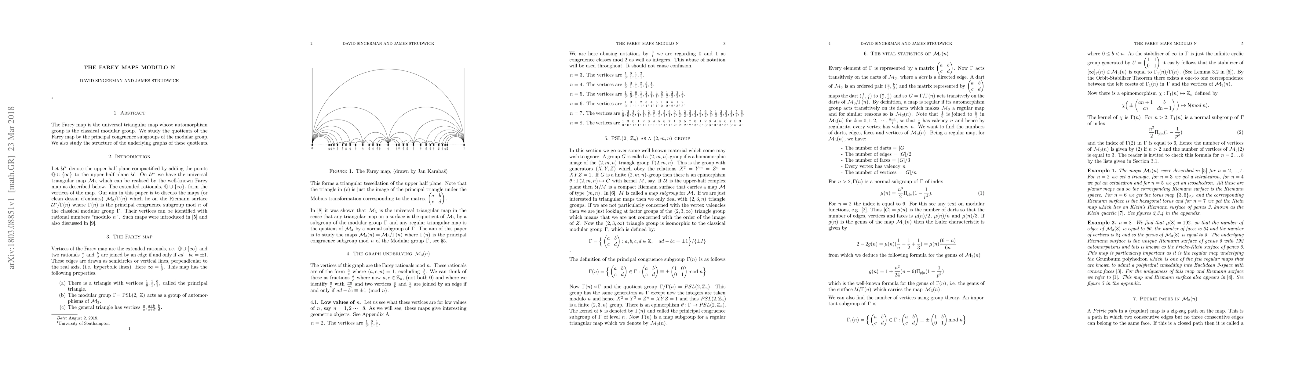 The Farey map is the universal triangular map whose automorphism group is the classical modular group. We study the quotients of the Farey map by the principal congruence subgroups of the modular group. We also study the structure of the underlying graphs of these quotients.
