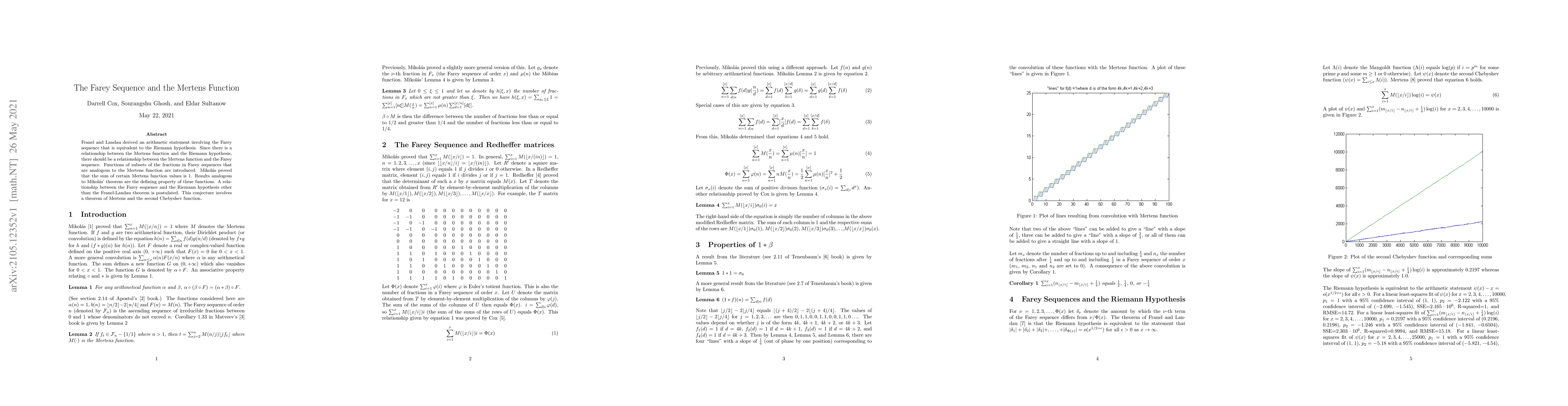 Franel and Landau derived an arithmetic statement involving the Farey sequence that is equivalent to the Riemann hypothesis. Since there is a relationship between the Mertens function and the Riemann hypothesis, there should be a relationship between the Mertens function and the Farey sequence. Functions of subsets of the fractions in Farey sequences that are analogous to the Mertens function are introduced. Mikolas proved that the sum of certain Mertens function values is 1. Results analogous to Mikolas theorem are the defining property of these functions. A relationship between the Farey sequence and the Riemann hypothesis other than the Franel-Landau theorem is postulated. This conjecture involves a theorem of Mertens and the second Chebyshev function.