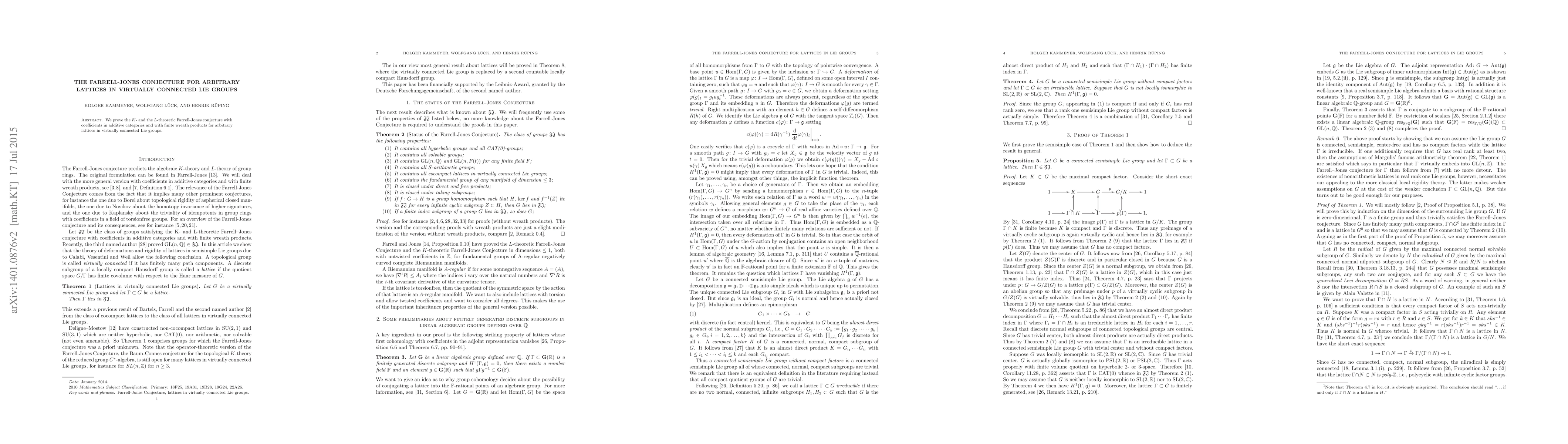 Summary: The paper proves the Farrell-Jones conjecture in K- and L-theory for arbitrary lattices in virtually connected Lie groups, utilizing additive categories and finite wreath products. This establishes a significant result in the study of topological and algebraic properties of these lattices.