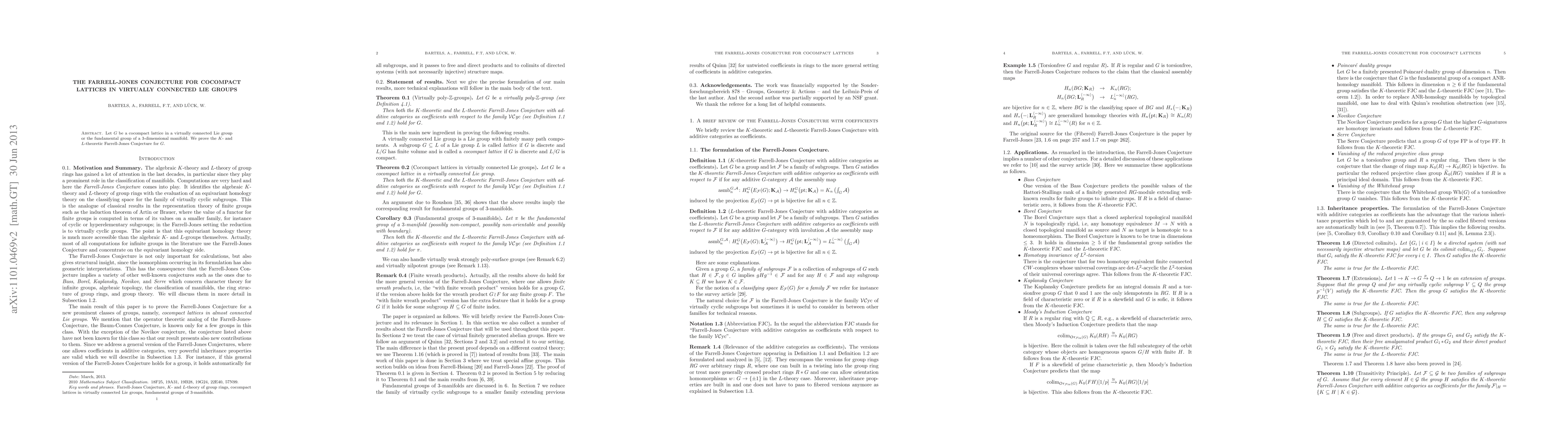 Summary: The paper proves the K-theoretic and L-theoretic Farrell-Jones Conjectures for cocompact lattices in virtually connected Lie groups and 3-manifold fundamental groups, utilizing coefficients in G-categories with involution. This extends the conjecture's validity up to dimension one.