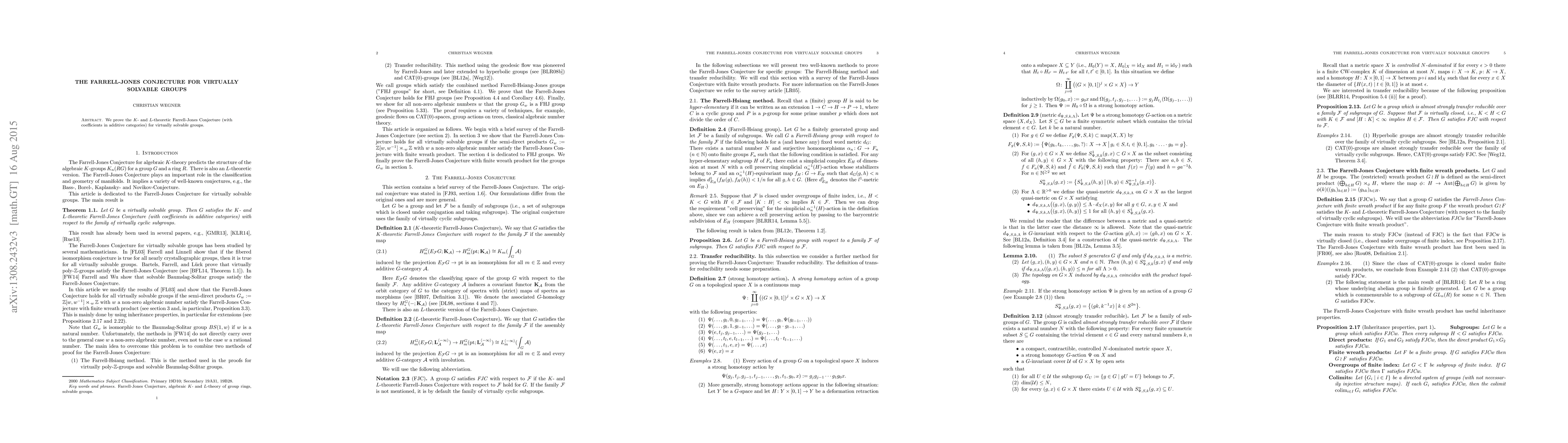The Farrell-Jones Conjecture for virtually solvable groups is proven in this paper, establishing results in both K-theory and L-theory with coefficients in additive categories. This provides significant advancements in understanding the structure of virtually solvable groups.
