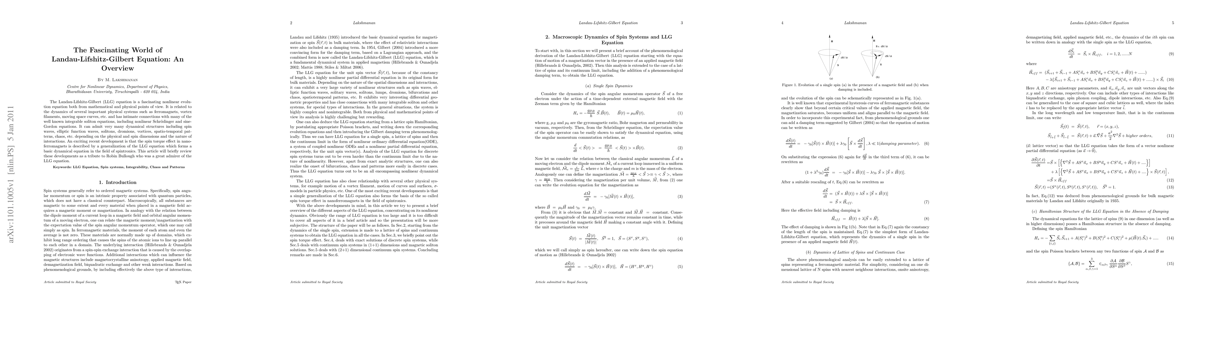 The Landau-Lifshitz-Gilbert (LLG) equation describes the dynamics of various physical systems, including ferromagnets and nanoferromagnets, and is linked to integrable soliton equations. Recent developments highlight its role in spintronics, particularly in describing the spin torque effect.