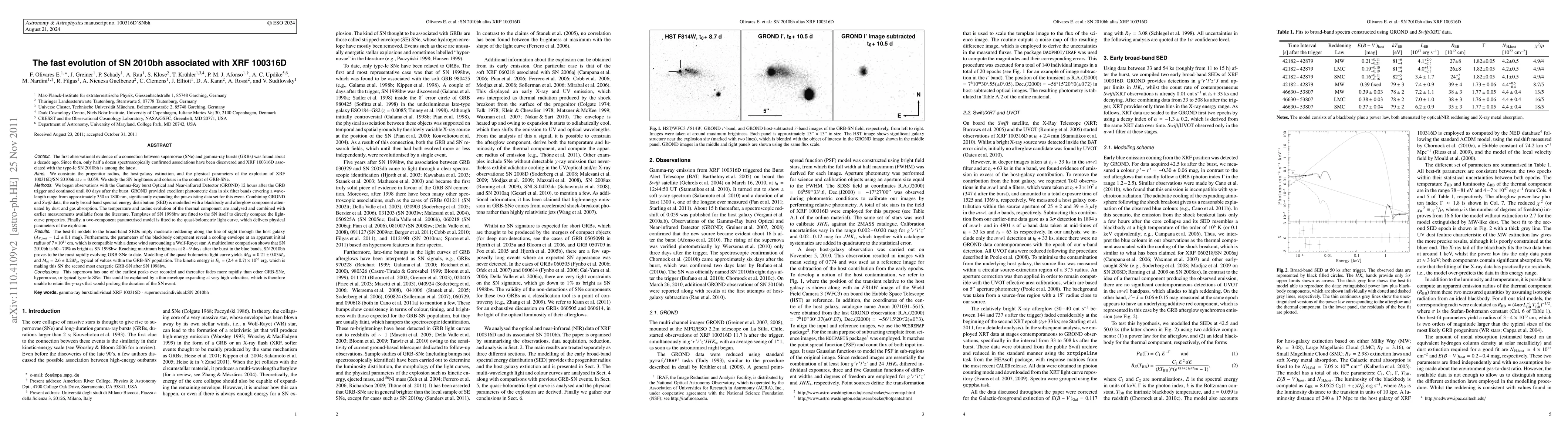 This paper investigates the rapidly evolving supernova SN 2010bh associated with XRF 100316D, revealing it to be the most rapidly evolving GRB-SN to date. Observations from GROND and Swift show a cooling envelope compatible with a dense wind surrounding a Wolf-Rayet star, with SN 2010bh being ~65% as bright as SN 1998bw and having a peak brightness at ~8 days post-burst.
