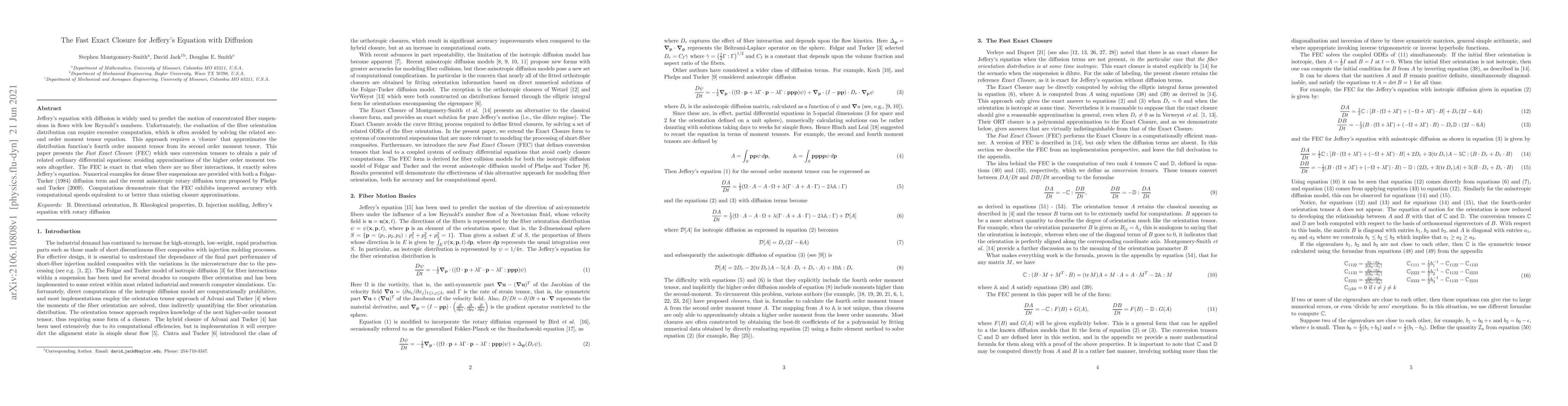 Jeffery's equation with diffusion is widely used to predict the motion of concentrated fiber suspensions in flows with low Reynold's numbers. Unfortunately, the evaluation of the fiber orientation distribution can require excessive computation, which is often avoided by solving the related second order moment tensor equation. This approach requires a `closure' that approximates the distribution function's fourth order moment tensor from its second order moment tensor. This paper presents the Fast Exact Closure (FEC) which uses conversion tensors to obtain a pair of related ordinary differential equations; avoiding approximations of the higher order moment tensors altogether. The FEC is exact in that when there are no fiber interactions, it exactly solves Jeffery's equation. Numerical examples for dense fiber suspensions are provided with both a Folgar-Tucker (1984) diffusion term and the recent anisotropic rotary diffusion term proposed by Phelps and Tucker (2009). Computations demonstrate that the FEC exhibits improved accuracy with computational speeds equivalent to or better than existing closure approximations.
