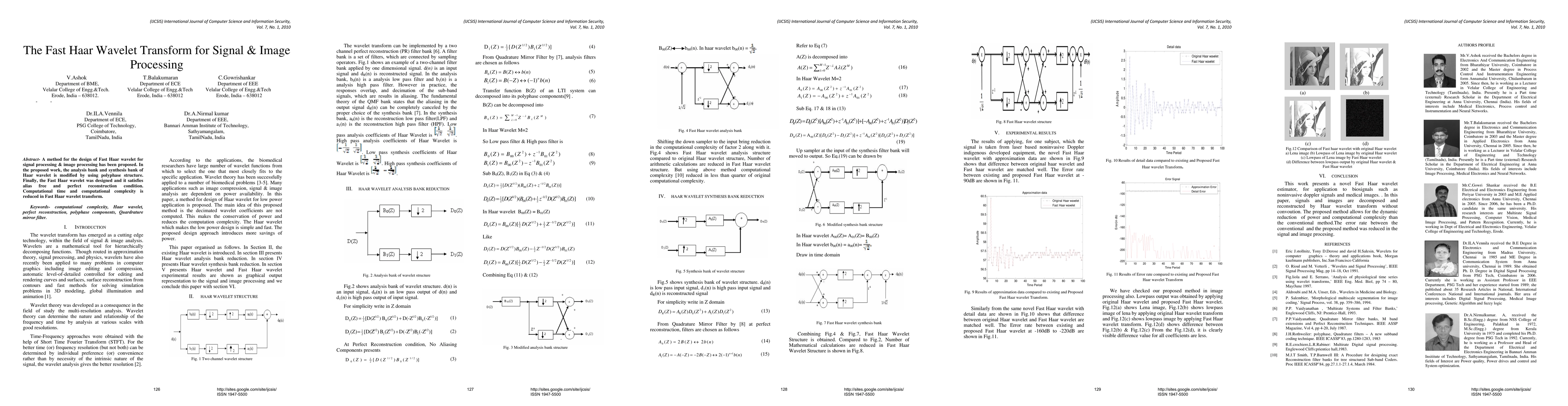 Summary: This paper proposes a modified Fast Haar wavelet transform using a polyphase structure, achieving alias-free and perfect reconstruction while reducing computational time and complexity for signal and image processing.