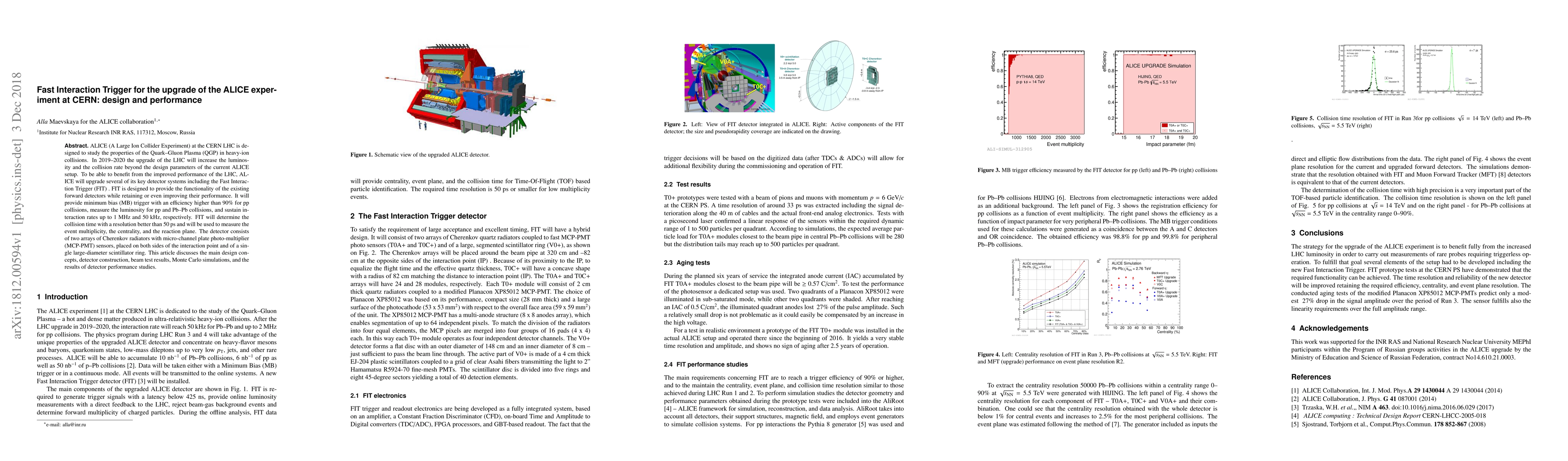 ALICE (A Large Ion Collider Experiment) experiment at CERN LHC is designed to study the properties of the Quark-Gluon Plasma (QGP) in heavy-ion collisions. In 2019-2020 the upgrade of CERN LHC will increase the luminosity and the collision rate beyond the design parameters of the current ALICE setup. To be able to benefit from the improved performance of the LHC, ALICE will upgrade several of its key detector systems including the Fast Interaction Trigger (FIT) [2]. FIT is designed to provide the functionality of the old forward detectors while retaining or even improving their performance. It will provide Minimum Bias trigger with efficiency higher than 90% for pp collisions, measure luminosity for pp and Pb-Pb, sustain interaction rates up to 1MHz and 50kHz, respectively. FIT will determine the collision time with a resolution better than 50ps, and will be used to measure the event multiplicity, the centrality and the reaction plane. The detector consists of 2 arrays of Cherenkov radiators with MCP-PMT sensors, placed on both sides of the interaction point and of a single large-diameter scintillator ring. This presentation will discuss the main design concepts, detector construction, beam test results, MC simulations, and the results of detector performance studies.