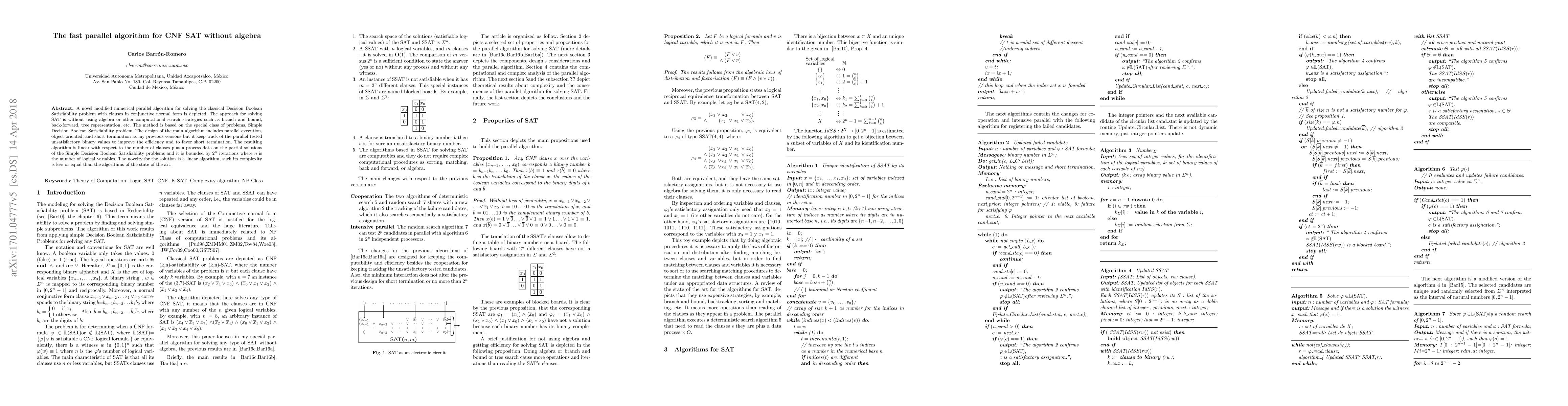 This paper introduces a novel parallel algorithm for solving CNF SAT problems without relying on algebra or traditional search strategies. The method focuses on Simple SAT (SSAT) and features parallel execution, object-oriented design, and improved efficiency through tracking unsatisfactory binary values, achieving linear complexity relative to the number of clauses.
