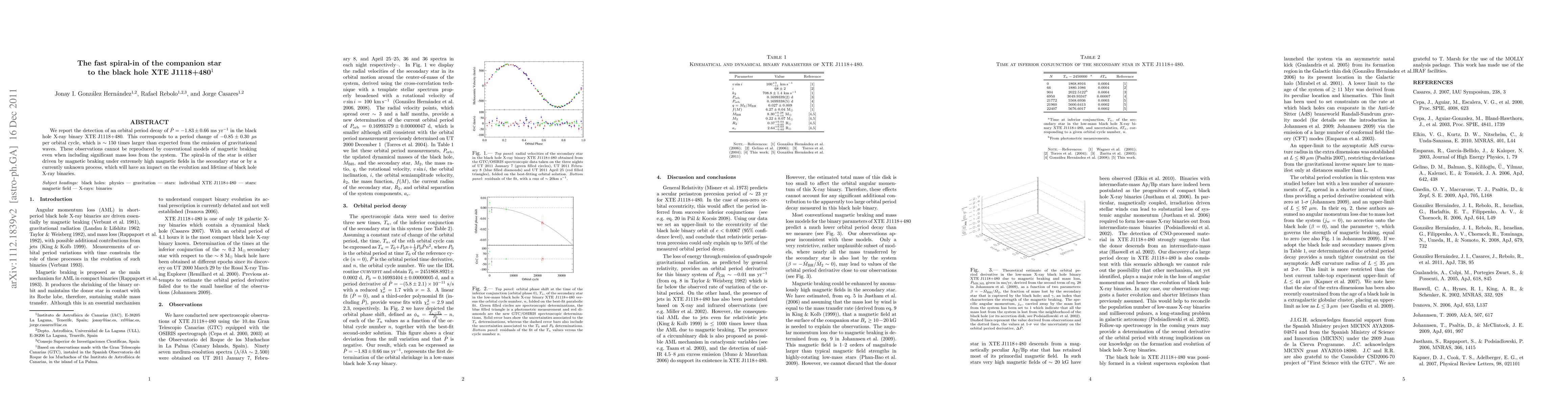 We report the detection of an orbital period decay of $\dot P=-1.83\pm0.66$ ms yr$^{-1}$ in the black hole X-ray binary XTE J1118+480. This corresponds to a period change of $-0.85\pm0.30$ $\mu $s per orbital cycle, which is $\sim 150$ times larger than expected from the emission of gravitational waves. These observations cannot be reproduced by conventional models of magnetic braking even when including significant mass loss from the system. The spiral-in of the star is either driven by magnetic braking under extremely high magnetic fields in the secondary star or by a currently unknown process, which will have an impact on the evolution and lifetime of black hole X-ray binaries.