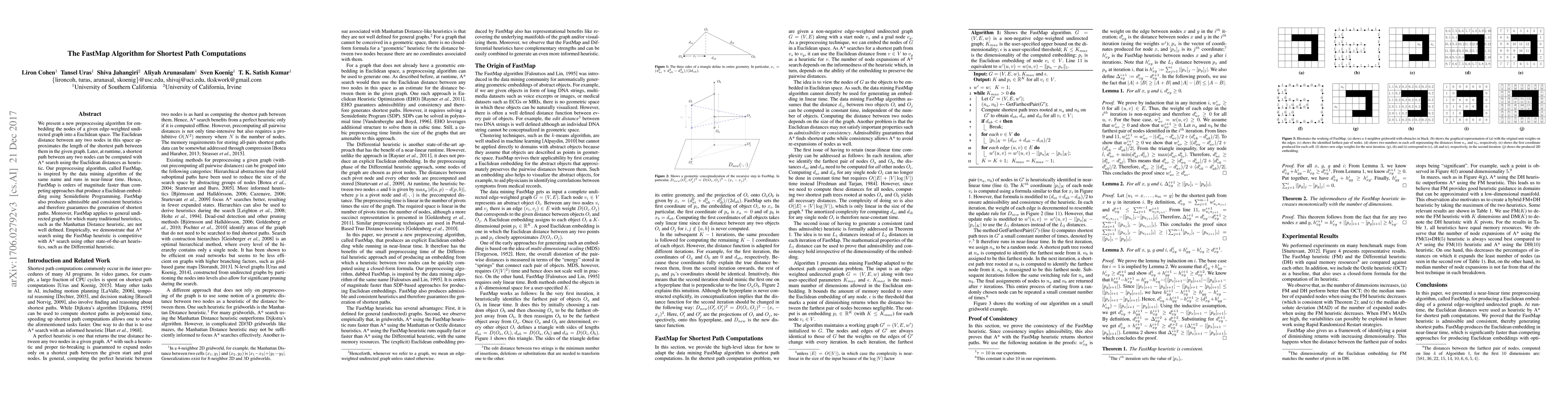 The FastMap algorithm efficiently embeds nodes of an edge-weighted undirected graph into Euclidean space, enabling A* search to compute shortest paths using the Euclidean distance as a heuristic, outperforming traditional methods in speed and applicability. Empirical results show FastMap's competitive performance against other state-of-the-art heuristics.