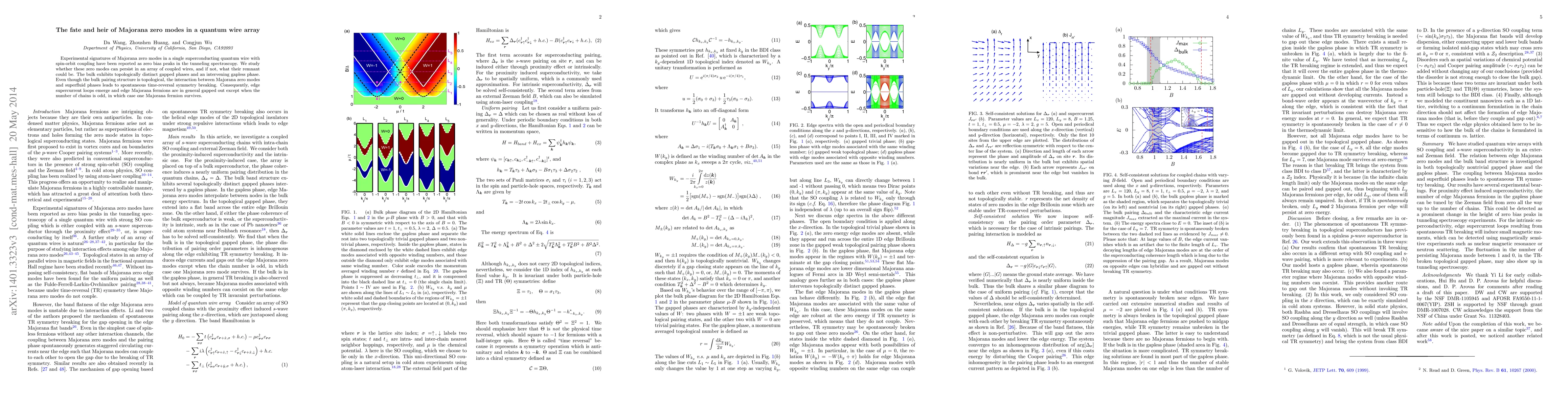 Experimental signatures of Majorana zero modes in a single superconducting quantum wire with spin-orbit coupling have been reported as zero bias peaks in the tunneling spectroscopy. We study whether these zero modes can persist in an array of coupled wires, and if not, what their remnant could be. The bulk exhibits topologically distinct gapped phases and an intervening gapless phase. Even though the bulk pairing structure is topological, the interaction between Majorana zero modes and superfluid phases leads to spontaneous time-reversal symmetry breaking. Consequently, edge supercurrent loops emerge and edge Majorana fermions are in general gapped out except when the number of chains is odd, in which case one Majorana fermion survives.