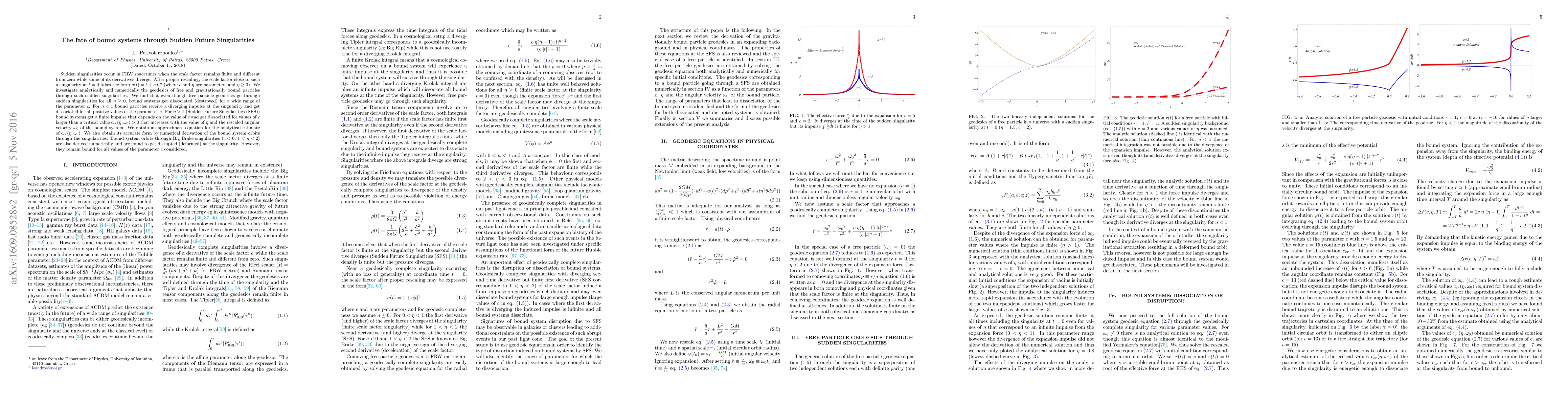 Sudden singularities occur in FRW spacetimes when the scale factor remains finite and different from zero while some of its derivatives diverge. After proper rescaling, the scale factor close to such a singularity at $t=0$ takes the form $a(t)=1+ c |t|^\eta$ (where $c$ and $\eta$ are parameters and $\eta\geq 0$). We investigate analytically and numerically the geodesics of free and gravitationally bound particles through such sudden singularities. We find that even though free particle geodesics go through sudden singularities for all $\eta\geq 0$, bound systems get dissociated for a wide range of the parameter $c$. For $\eta <1$ bound particles receive a diverging impulse at the singularity and get dissociated for all positive values of the parameter $c$. For $\eta > 1$ (Sudden Future Singularities (SFS)) bound systems get a finite impulse that depends on the value of $c$ and get dissociated for values of $c$ larger than a critical value $c_{cr}(\eta,\omega_0)>0$ that increases with the value of $\eta$ and the rescaled angular velocity $\omega_0$ of the bound system. We obtain an approximate equation for the analytical estimate of $c_{cr}(\eta,\omega_0)$. We also obtain its accurate form by numerical derivation of the bound system orbits through the singularities. Bound system orbits through Big Brake singularities ($c<0$, $1<\eta<2$) are also derived numerically and are found to get disrupted at the singularity. However, they remain bound for all values of the parameter $c$ considered.