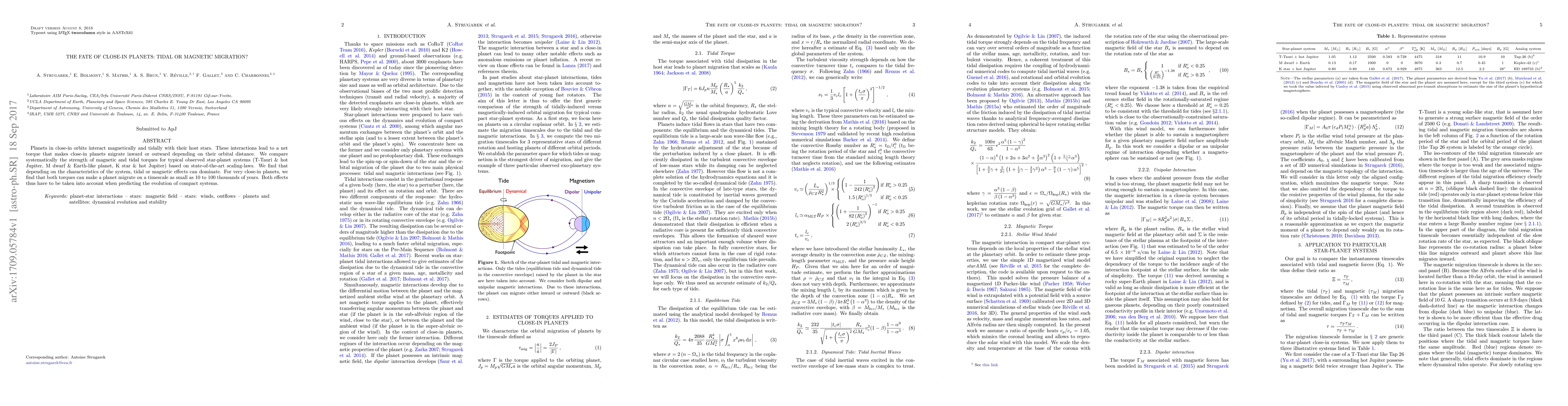 This paper compares magnetic and tidal forces influencing the migration of close-in planets, finding that both effects can dominate depending on the star-planet system characteristics. It concludes that both torques must be considered for accurate predictions of the evolution of compact planetary systems.