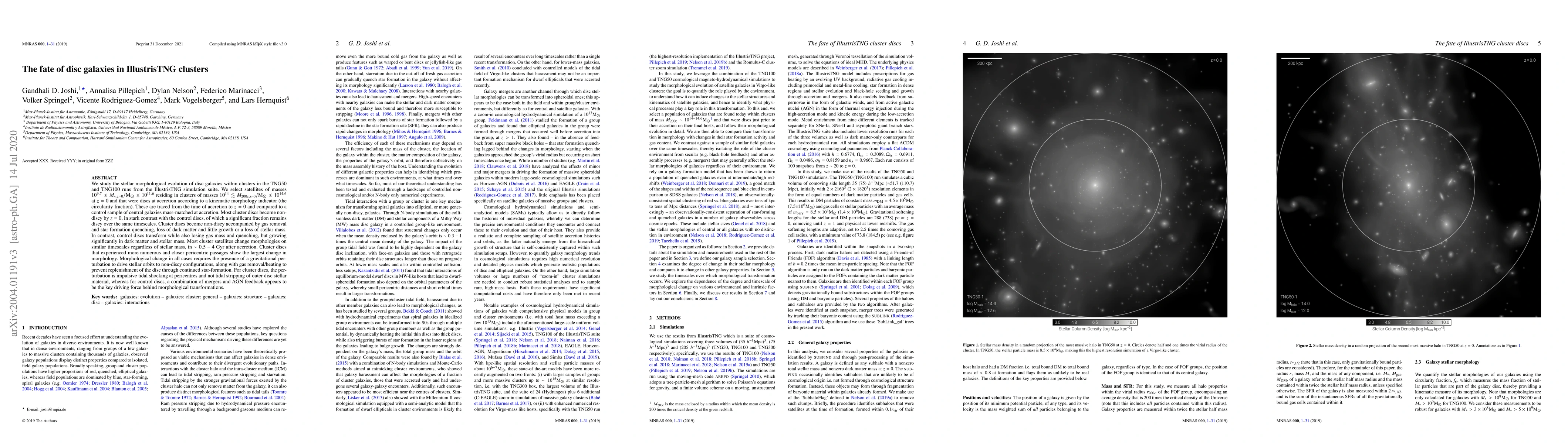 This study explores the morphological evolution of disk galaxies in clusters using the IllustrisTNG simulation, finding that cluster discs lose their discy morphology and gas, while control discs retain their discy nature despite similar gas and star formation changes. The transformation is driven by gravitational perturbations and gas removal in clusters.