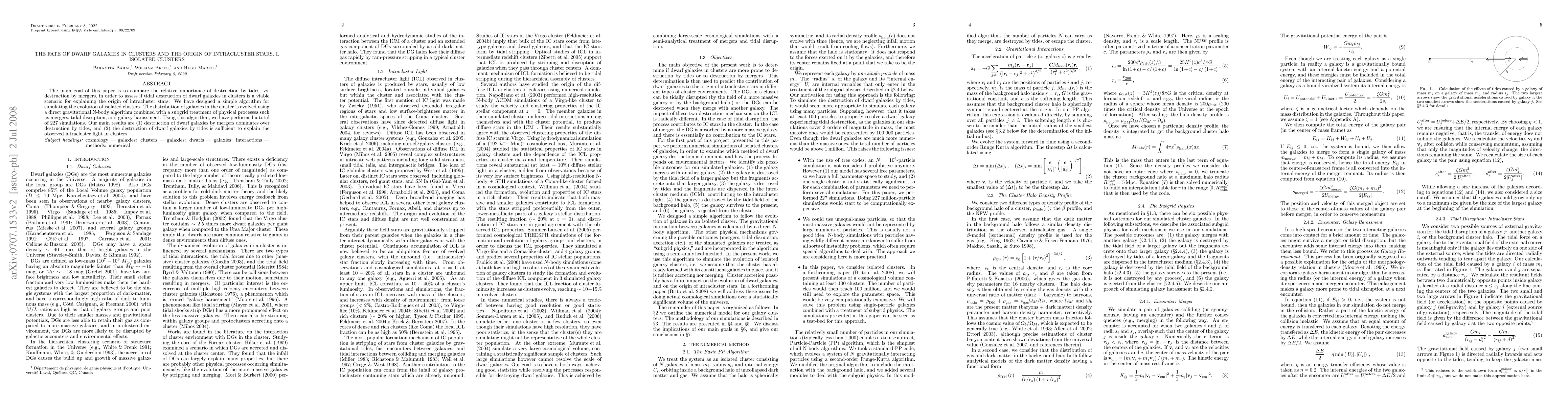 This paper investigates the fate of dwarf galaxies in isolated clusters, finding that mergers, rather than tidal forces, primarily destroy these galaxies. The study concludes that tidal disruption of dwarf galaxies can sufficiently account for the observed intracluster stars.