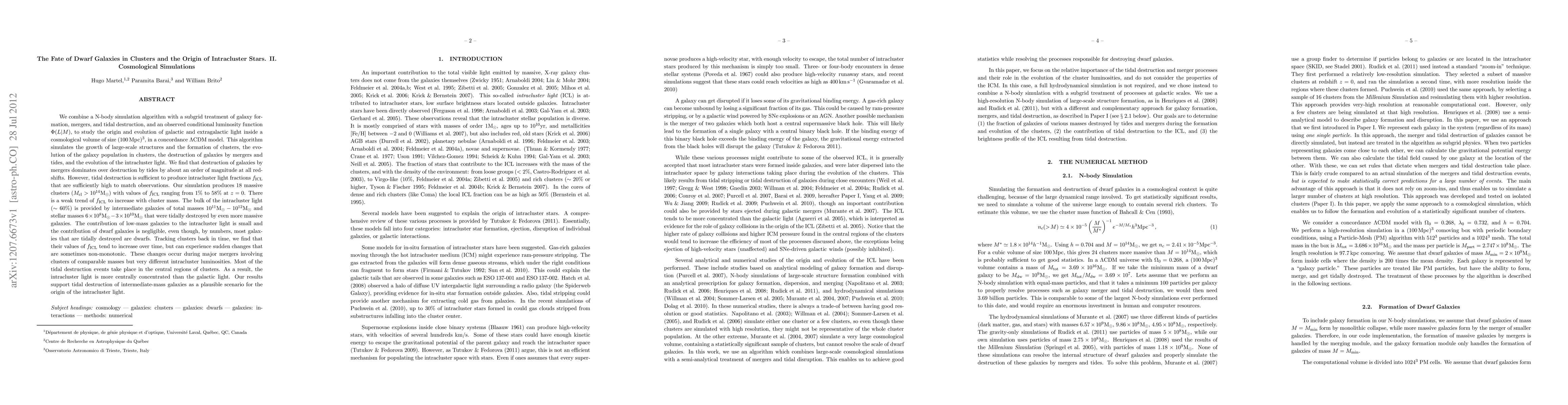 This paper uses cosmological simulations to explore the fate of dwarf galaxies in clusters and the origin of intracluster stars. The study finds that while mergers dominate galaxy destruction, tidal destruction is significant enough to produce intracluster light, with intermediate-mass galaxies being the primary contributors. The intracluster light is more centrally concentrated due to destruction events in cluster cores.