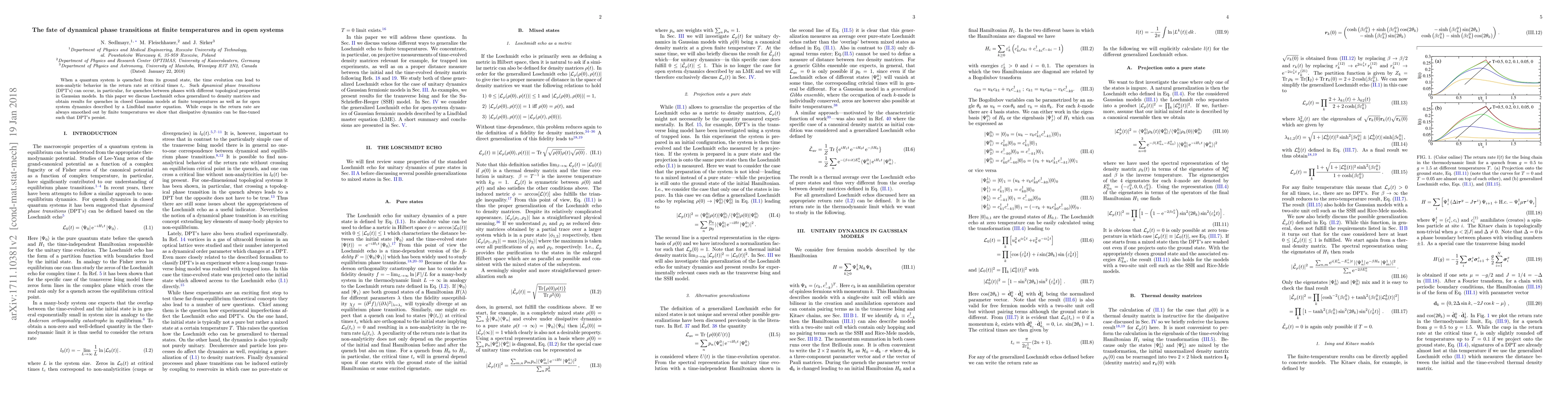 This paper investigates how dynamical phase transitions (DPT's) behave at finite temperatures and in open quantum systems. It generalizes Loschmidt echos to density matrices, showing that while thermal effects smooth out cusps in return rates, dissipative dynamics can sustain DPT's under specific conditions.
