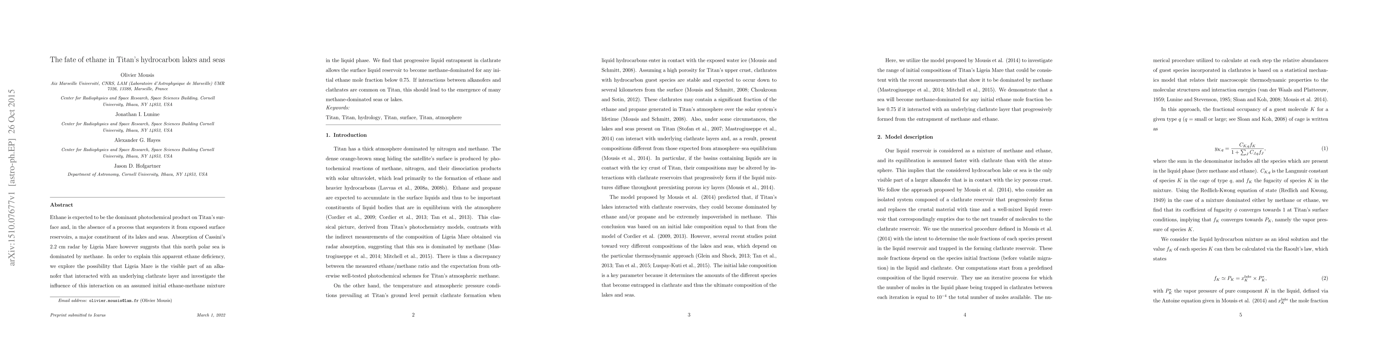 This paper investigates why Titan's Ligeia Mare is dominated by methane despite ethane being the primary photochemical product, suggesting that ethane is sequestered in clathrate layers beneath the lake's surface, leading to methane-dominated surface reservoirs.