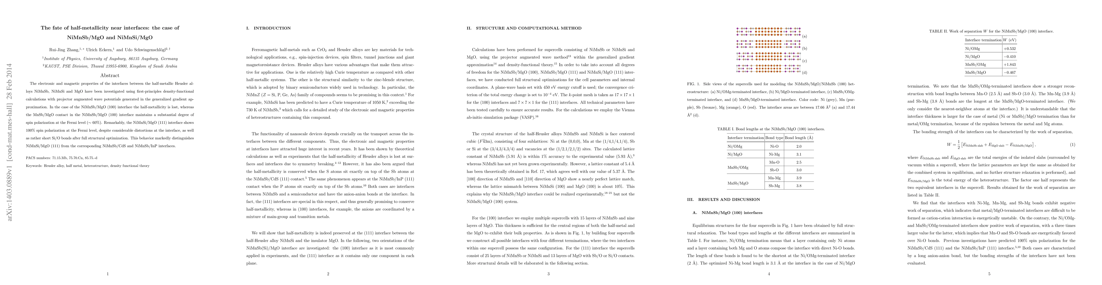 This study investigates the electronic and magnetic properties of half-metallic Heusler alloy interfaces with MgO, revealing that while NiMnSb/MgO loses half-metallicity, NiMnSi/MgO maintains 100% spin polarization at the Fermi level despite structural distortions.