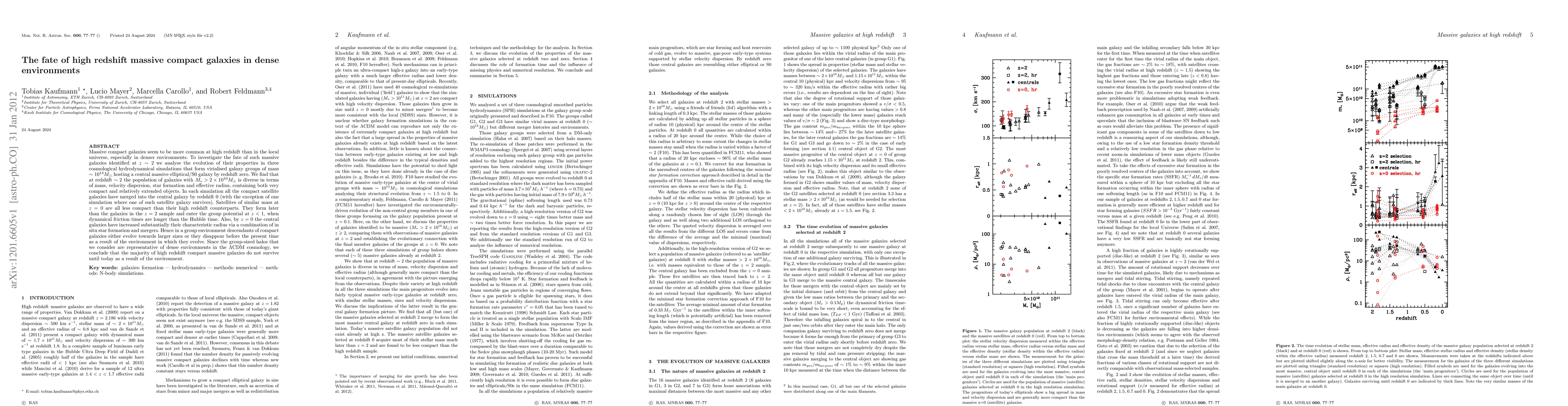 Massive compact galaxies seem to be more common at high redshift than in the local universe, especially in denser environments. To investigate the fate of such massive galaxies identified at z~2 we analyse the evolution of their properties in three cosmological hydrodynamical simulations that form virialised galaxy groups of mass ~10^13 Msun hosting a central massive elliptical/S0 galaxy by redshift zero. We find that at redshift ~2 the population of galaxies with M_*> 2 10^10 Msun is diverse in terms of mass, velocity dispersion, star formation and effective radius, containing both very compact and relatively extended objects. In each simulation all the compact satellite galaxies have merged into the central galaxy by redshift 0 (with the exception of one simulation where one of such satellite galaxy survives). Satellites of similar mass at z = 0 are all less compact than their high redshift counterparts. They form later than the galaxies in the z = 2 sample and enter the group potential at z < 1, when dynamical friction times are longer than the Hubble time. Also, by z = 0 the central galaxies have increased substantially their characteristic radius via a combination of in situ star formation and mergers. Hence in a group environment descendants of compact galaxies either evolve towards larger sizes or they disappear before the present time as a result of the environment in which they evolve. Since the group-sized halos that we consider are representative of dense environments in the LambdaCDM cosmology, we conclude that the majority of high redshift compact massive galaxies do not survive until today as a result of the environment.